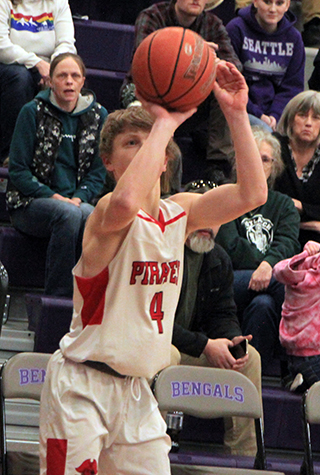 Lane Schumacher sites in a 3-point shot against Potlatch. Vs. Potlatch