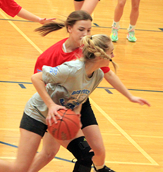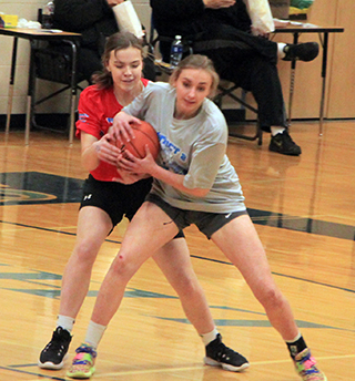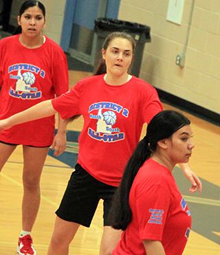 ![]() ![]() Delanie Lockett was Prairie's representative in the District 2 All-Star game played at Lapwai last Friday. Here she forces a jump ball and then is shown guarding Grangeville's Talia Brown. ![]() ![]() Jade Prigge was St. John Bosco's representative at the All-Star game. She is shown battling Kendrick's Erin Morgan for the opening tap and playing defense later in the game. ![]() ![]() Zach Rambo was one of two Prairie boys team players in the All-Star game. He is shown competing in the Dunk Contest and on defense during the game. He also took second in the 3-point shooting contest, tying Will Casebolt of Logos in the opening round and then losing in a shoot-off. Braydon Forsman of Lewiston, son of Prairie graduate Rod Forsman, won the dunk contest. ![]() ![]() Lane Schumacher also represented Prairie in the All-Star game. He is shown handling the ball.