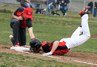 For the second game in a row a late game rally led to a Pirates win.In the opening inning, Cody Kaschmitter had a base hit but was the Pirates’ only baserunner.Alex McElroy, in his high school pitching debut, was Prairie’s starter on the mound. He walked Kamiah’s leadoff hitter then got a pair of strikeouts and a foul popup to catcher Cody Kaschmitter to get out of the inning. The Pirates went down in order in the second inning. Alex McElroy again walked the leadoff hitter and also walked the next hitter. He got a pair of called strike 3’s then gave up another walk to load the bases. He got another strikeout to end the inning with Cody Kaschmitter having to throw the batter out at first after the strikeout pitch got away. In the third inning McIntire was hit by a pitch with 1 out but was then forced at second and a short fly ball to third ended the inning. In the bottom of the third Chase Kaschmitter took over on the mound and had a rough start. The first 5 batters all reached base on a hit batsman, single, error, walk and single with 3 runs scoring. He got a strikeout then gave up a walk to load the bases. Another error led to a run and a single scored 2 more runs before he got a strikeout and popup back to the mound to get out of the inning with 6 runs scoring. Prairie got on the scoreboard in the bottom of the inning. Chase Kaschmitter led off with a single to right center. He went to second on a wild pitch. Colton McElroy reached on an error with Chase moving to third. Behler then hit into a fielder’s choice, forcing Colton McElroy at second with the throw getting past the first baseman allowing Chase to score. That made it 1-6. Chase Kaschmitter settled down on the mound after his rough inning and gave up just 1 baserunner on a walk over the next 3 innings. Prairie got back into the game in the bottom of the sixth. Chase Kaschmitter drew a 1 out walk. Colton McElroy followed with a single to right. Behler was hit by a pitch to load the bases. Shears was then hit by a pitch to force home Chase Kaschmitter. Quintal hit a comebacker to the mound to force McElroy at home. Uhlenkott then doubled to right field to score both Behler and Shears and cut the deficit to 4-6. In the top of the seventh Kamiah changed pitchers and the Pirates quickly for to the new pitcher. Alex McElroy opened the inning with a single to right. Cody Kaschmitter reached on an error. Chase Kaschmitter singled home Alex McElroy. Colton McElroy reached on an error that loaded the bases. Behler hit into a fielder’s choice with Cody Kaschmitter scoring and no outs recorded. Chase Kaschmitter then scored on an error by the catcher trying to get him at third. Shears singled to right to score Colton McElroy and Behler. Quintal singled up the middle. Shears scored on another error by the catcher. Quintal stole second and scored when McIntire reached on an error. Alex McElroy singled to right center and Kamiah changed pitchers again. Cody Kaschmitter walked to load the bases and Chase Kaschmitter singled to scored McIntire. Colton McElroy was hit by a pitch to force home his brother Alex to make it 13-6. With Chase Kaschmitter having hit the pitch limit, he and his brother Cody traded places in the bottom of the seventh. Cody Kaschmitter struck out the first batter he faced then put two runners on with a hit batsman and a walk. He then caught two batters looking at strike 3 to seal the win for the Pirates. Prairie had 10 hits in the game led by Chase Kaschmitter who had 3 singles and 2 RBI. Alex McElroy had 2 singles. Uhlenkott had a double and 2 RBI. Cody Kaschmitter, Colton McElroy, Shears and Quintal each had a single. Alex McElroy pitched 2 innings allowing no runs on no hits with 4 walks and 4 strikeouts. Chase Kaschmitter pitched 4 innings allowing 6 runs on 3 hits with 3 walks, 1 hit batsman and 8 strikeouts. Cody Kaschmitter pitched 1 inning allowing no runs on no hits with 1 walk, 1 hit batsman and 3 strikeouts. Prairie is now 2-1 on the season and in league play. Prairie 0 0 0 1 0 3 9—13 10 2 Kamiah 0 0 6 0 0 0 0— 0 6 8 ![]() ![]() Cody Kaschmitter gets to first with a single in the first inning at C.V. He and coach Dustin Behler watch to see if the ball gets away from the outfielder. Cody eventually scored the first run of the game. ![]() Alex McElroy tries to beat out a ground ball at C.V. ![]() Carter Shears settles under a fly ball in right field at C.V. ![]() Chase Kaschmitter snags an infield popup at Kamiah. ![]() Colton McElroy legs out one of his 3 hits at Kamiah. ![]() After a rocky start at Kamiah Chase Kaschmitter settled in and allowed just 1 baserunner in his final 3 innings on the mound. ![]() Catcher Cody Kaschmitter catches a foul popup near the backstop at Kamiah. ![]() Chase Kaschmitter slides head first into home with a run at Kamiah.