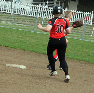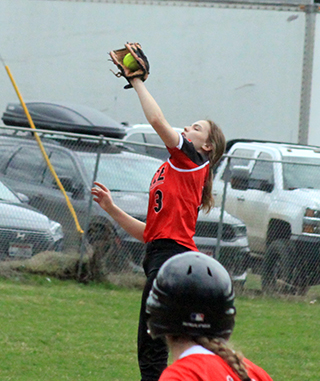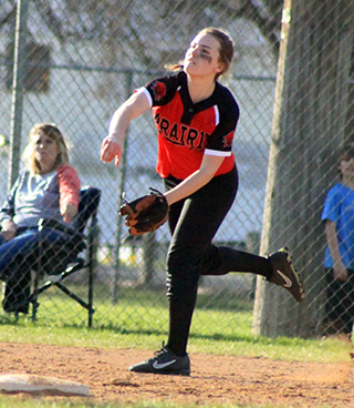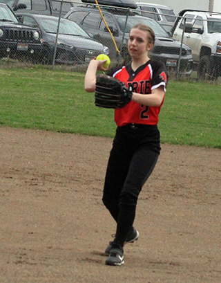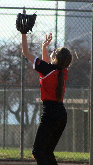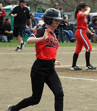 The game against Garfield-Palouse at Lewiston was anything but a clean game with lots of walks and errors.Gar-Pal was the home team for the game and Prairie scored 3 runs in the top of the first without benefit of a hit. Delanie Lockett, Schlader, Remacle, Enneking and Farr all were walked. Enneking and Farr picked up an RBI each on a bases loaded walk and Remacle scored the third run on a wild pitch. In the bottom of the first Gar-Pal scored 2 runs, also without benefit of a hit thanks to 3 Pirate errors.In the second Prairie added 3 more runs, this time with a couple of hits added into to 3 walks. Martin walked to lead off the inning, stole second, went to third on a wild pitch and scored on another wild pitch. Key drew a walk and stole second. Schlader followed with the first hit of the game, an RBI double to center. Remacle walked again and Enneking singled to load the bases. Farr grounded to short for a force at second but Schlader was able to score making it 6-3. 4 hits, a walk and 2 more errors allowed Gar-Pal to take their first lead in the bottom of the second as they plated 5 runs for a 6-7 lead. Prairie tied it in the third as Kaylie Lockett led off with a walk and scored on Schlader’s 2-out single to right. Prairie wound up leaving the bases loaded in the inning. Key got the side out in order in the bottom of the third. Prairie took back the lead with a 3-run fourth inning. Farr led off with a walk and stole second. Kaylie Lockett walked after an out. Martin hit into a fielder’s choice as Gar-Pal tried to get Farr at the plate and didn’t. Kaylie Lockett advanced to third on the play. Delanie Lockett hit a sacrifice fly to right to score her sister. Key then singled to left to score Martin for a 10-7 lead. Key pitched around a 1-out walk in the bottom of the fourth as she again held Gar-Pal scoreless. Enneking led off the fifth with a single but was stranded at third. An error, 3 singles and a walk enabled Gar-Pal to score 2 runs in the bottom of the fifth and cut Prairie’s lead to 10-9. Neither team scored in the 6th. In the top of the seventh Prairie added some insurance runs. Schlader led off with a single to right and stole second. After an out Enneking was hit by a pitch. Farr singled home Schlader then Lexi Schumacher was put in to run. Amelia Uhlenkott pinch-hit for Forsmann and hit into a fielder’s choice. Enneking was put out at home but in an attempt to get another out, Schumacher scored to make it 12-9. In the bottom of the seventh, a walk and an error led to a run. After 2 outs, another error led to a second run. Gar-Pal’s #3 hitter then hit a long fly ball to center that looked like it would at least tie the game but Forsmann was able to run it down and catch the ball to end the game. Prairie had 7 hits led by Schlader who had a double and 2 singles and 2 RBI. Enneking had a pair of singles and an RBI. Farr had a single and 2 RBI. Key had a single and an RBI. Delanie Lockett and Martin each had an RBI. Key pitched all 7 innings and allowed 11 runs on 8 hits with 5 walks and 4 strikeouts. Prairie 3 3 1 3 0 0 2—12 7 8 Gar-Pal 2 5 0 0 2 0 2—11 8 2 ![]() Delanie Lockett makes a catch at shortstop against C.V.