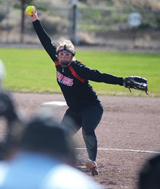 ![]() Mackenzie Key is about to let fly with a pitch at Pomeroy.