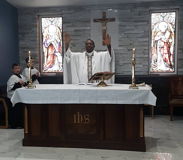 St. John Bosco Academy now has their own chaplain St. John Bosco Academy welcomed Fr. Anthony Nnodim to the school in February as a chaplain and teacher. This is the first time the school has had an on-campus chaplain. Fr. Anthony was ordained a priest in Nigeria in 2002 and has served at many parishes there, most with parish schools. This is his first assignment in the US. Fr. Anthony provides Masses at the school, and will begin a regular schedule of reconciliation for students and staff. He will ease into teaching responsibilities with classes including Theology and Latin. Fr. Anthony will also assist the North Central Deanery on weekends, filling in for other priests as needed. Students and staff are thrilled to have a chaplain to allow more access to the sacraments, and Fr. Anthony's welcoming smile shows the joy he has in offering them to us. ![]() St. John Bosco Academy now has their own chaplain. Dr. Anthony Nnodim started at the school in February. In addition to chaplain duties he will also do some teaching. Photo by SJB. ![]() Father Anthony Nnodim celebrates a Mass in the chapel at St. John Bosco Academy. Photo by St. John Bosco Academy.