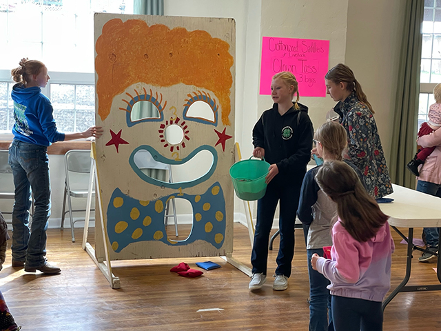 Cottonwood Saddliers Clown Toss game at the 4-H party. Photo by Tara