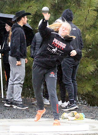 The Prairie Track team had 6 event winners at the inaugural Troy Invitational this past Saturday, April 30 at Troy. Zach Rambo won the 400 and Shane Hanson won the discus for the boys team and Kristin Wemhoff won both the 200 and 400 for the girls team. The girls also had the 4x200 and medley relay champions. Rambo won the 400 in 53.24. He was also third in the long jump at 17’7”. Hanson won the discus with a mark of 125’8” and was also third in the high jump at 5’2”. Wemhoff won the 200 in 27.64 and the 400 in 1:02.36. Alli Geis, Aubree Rehder, Julia Rehder and Wemhoff won the 4x200 in 1:56.0 and Rebecca Seubert, Aubree Rehder, Julia Rehder and Geis won the medley in 2:05.28. In other boys events Brody Hasselstrom placed 2nd in the shot put at 38’11” and was 5th in the discus at 111’10”. T.J. Hibbard was 3rd in the discus at 116’9½”. Jesse Cronan was 4th in the discus at 115’6”, 6th in the long jump at 16’10½” and 10th in the 200 at 26.57. Noah Geis was 4th in the 400 in 57.31 and 22nd in the discus at 67’8”. Briggs Rambo was 5th in the 300 hurdles in 53.74, 18th in the long jump at 13’2” and 30th in the 100 in 14.38. Matthew Wemhoff was 6th in the high jump at 4’10” and 8th in the long jump at 16’1”. Lee Forsmann was 7th in the discus at 106’0”, 9th in the long jump at 15’5” and 12th in the 200 at 26.92. Bennie Elven was 11th in the discus at 98’11½”, 14th in the 400 in 1:07.53 and 20th in the 200 in 28.18. Zane Uptmor was 11th in the 400 at 1:05.16, 20th in the discus at 71’3½” and 21st in the 200 in 28.44. Drake Cronan was 15th in the 200 in 27.77, 16th in the 400 in 1:10.77 and 26th in the discus at 59’7”. The 4x100 relay team of Geis, Hibbard, Wemhoff and Zach Rambo was third in 53.74. As a team the boys placed 4th out of 10 teams with 78½ pts. In other girls results Sarah Lustig was 2nd in the discus at 82’10” and 17th in the shot put at 22’7”. Elizabeth Severns was 4th in the discus at 79’3” and 15th in the shot put at 23’2”. Julia Rehder was 5th in the long jump at 13’5”. Geis was 7th in the 100 in 14.2. Holli Schumacher was 9th in the 400 in 1:16.70, 13th in the 200 in 34.01 and 18th in the 100 in 17.09. Ashlyn North was 10th in the 100 hurdles in 22.43. Olivia Klapprich was 11th in the long jump at 12’5” and 12th in the 200 in 33.47. Harlee Brannan was 14th in the 200 in 35.40, 16th in the long jump at 9’11”, 17th in the discus at 53’3” and 22nd in the shot put at 17’11”. Seubert was 17th in the long jump at 9’7”. The 4x100 team of Geis, Julia Rehder, Aubree Rehder and Wemhoff placed 2nd in 55.46. As a team the girls placed 3rd out of 10 team with 66½ pts. ![]() Aubree Rehder hands off to Julia Rehder in the winning 4x200 relay. ![]() ![]() Sarah Lustig and Elizabeth Severns in the shot put. ![]() Julia Rehder in the long jump. ![]() ![]() Noah Geis at the start of the 4x200 and T.J. Hibbard trying to hand off to Matt Wemhoff a lap later. 'Zach Rambo soars in the long jump. ![]() Matthew Wemhoff in the long jump. ![]() Shane Hanson clears a height in the high jump. ![]() ![]() ![]() Some of Prairie's impressive discus throwers that seem to fill up the top 10 at every meet. From left are Bennie Elven, Jesse Cronan and T.J. Hibbard. March 15-Nez Perce Games at Kamiah 18-Prairie Meet 23-White Pine League Meet at Kamiah 26-Prairie Meet 30-Troy Invitational at Troy 5-Meet of Champions 13-14-District Meet 20-21-State Meet at Middleton PRAIRIE JR. HIGH TRACK & FIELD 2022 April 21-Prairie Meet 26-Kamiah Meet 7-Kamiah Middle School Invitational, 9 a.m. |