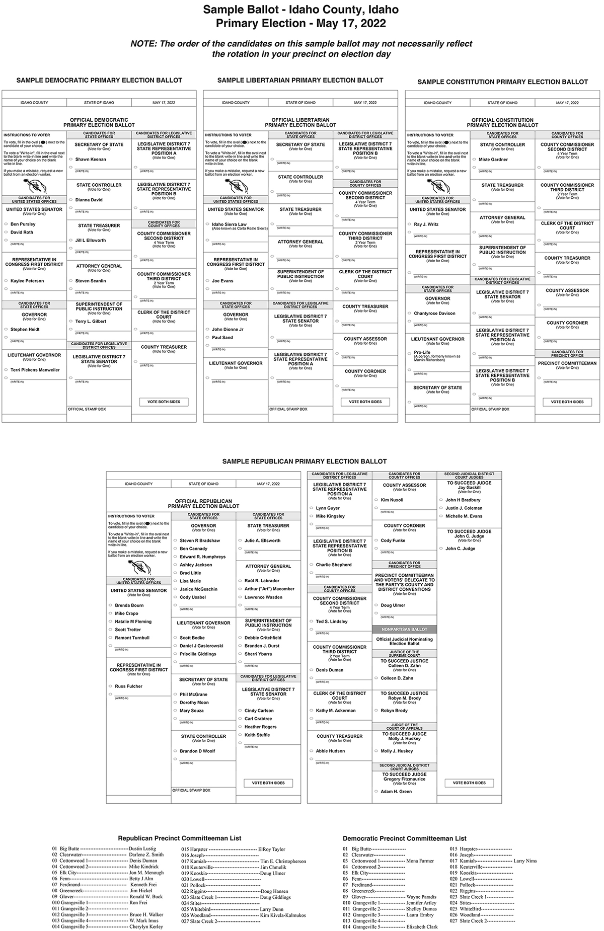 Above is the candidate sample ballot for the primary election next Tuesday, May 17. Click on the photo for a larger view.