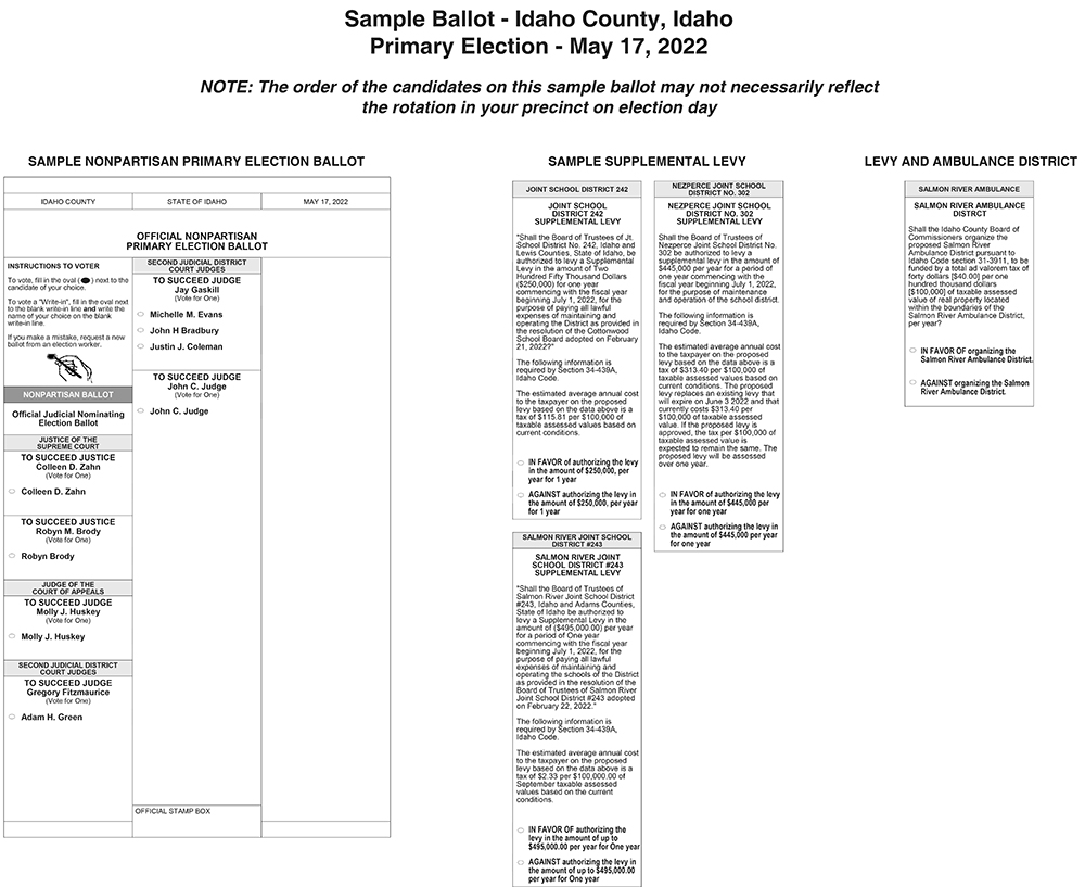 Above is the sample ballot for taxing district elections and the judicial candidates.