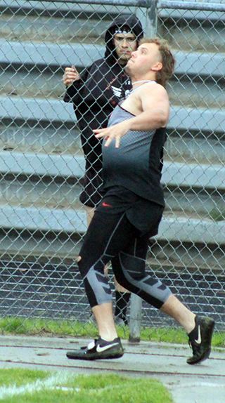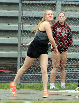 Saturday, winning with a mark of 108’7”. She also won the shot put with