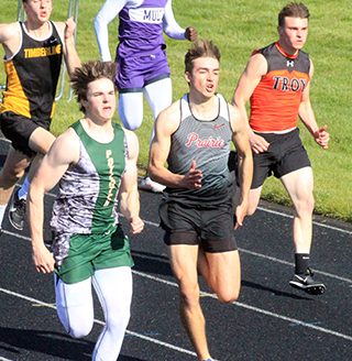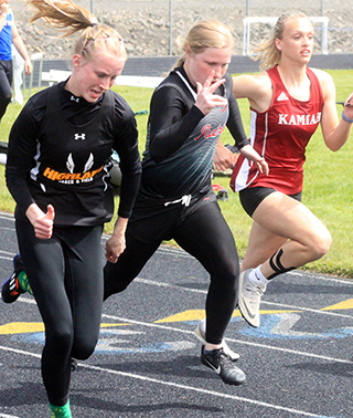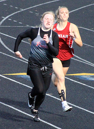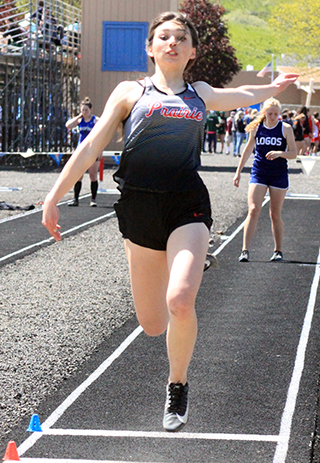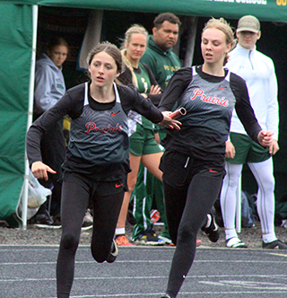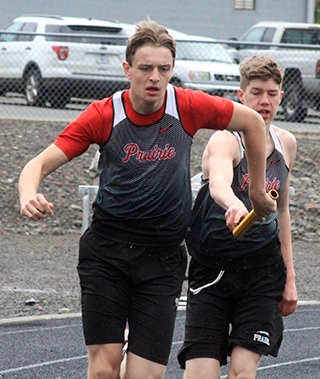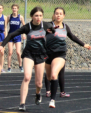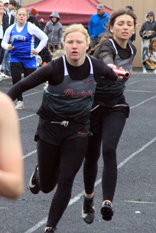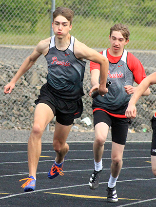 Zach Rambo qualified for State in 4 events at the Regional Track Meet at Lapwai May 13 & 14. Rambo won the 200 meter dash in 23.58 after breaking the school record with a time of 23.17 in the preliminaries on Friday. He also qualified for State with a 2nd place finish in the 400 in 53.11, a third place finish in the 100 in 11.75 and was the anchor leg of the 4x100 relay with too second in 46.78. Jesse Cronan, T.J. Hibbard and Noah Geis ran the first 3 legs of the relay. ![]() For the girls Kristin Wemhoff qualified for state in 3 events. She was 2nd in the 100 in 13.41, 2nd in the 200 in 27.82 and 2nd in the 400 in 1:01.80. Shane Hanson qualified for state in two events. He was third in the discus in a personal best 144’0” and fourth in the high jump at 5’4”. Also qualifying for state in the discus were Hibbard, who took second with a personal best of 144’5” and Brody Hasselstrom who was 5th with a personal best of 130’0”. Elizabeth Severns qualified for state in the girls discus with a personal best mark of 88’3”. The girls relays had a tough weekend as the 4x100, 4x200 and medley all finished in third place with only the top 2 relays advancing to state. The girls 4x100 team of Alli Geis, Rebecca Seubert, Aubree Rehder and Julia Rehder placed third in 55.47 just 0.06 seconds short of second. The 4x200 team of Geis, Aubree Rehder, Julia Rehder and Wemhoff was third in 1:56.17, just 0.12 seconds behind 2nd. They had a bad 2nd handoff but anchor runner Wemhoff nearly got them to state by making up a ton of ground but got edged at the finish. The medley team of Seubert, Aubree Rehder, Julia Rehder and Geis finished third in 2:01.38, just 0.17 seconds shy of second. In other girls results Klapprich tied for 7th in the pole vault at 6’6” and was 11th in the long jump at 12’8¼”. Holli Schumacher tied for 7th in the pole vault at 6’6” and was 12th in the 400 in 1:16.92, 25th in the 100 in 16.38 and 32nd in the 100 in 16.38. Julia Rehder was 7th in the long jump at 13’7”. Geis was 10th in the 100 in 14.15. Sarah Lustig was 10th in the discus at 78’4” and 27th in the shot put at 19’5½”. Ashlyn North was 13th in the 100 hurdles in 20.99, 17th in the 200 in 32.26, 21st in the 100 in 15.20 and 23rd in the long jump at 11’3”. Seubert was 14th in the 100 in 14.59 and 16th in the 100 hurdles in 23.06. Severns was also 16th in the shot put at 25’½”. Morgan Pack was 16th in the 400 in 1:26.74; 32nd in the 200 in 40.41 and 37th in the 100 in 17.86. Harlee Brannan was 19th in the discus at 64’7”, 22nd in the long jump at 11’7”, 27th in the 200 at 34.86 and 33rd in the shot at 17’0”. Meghan Fowler was 21st in the discus at 63’9½” and 28th in the shot at 19’2”. Aubree Rehder was 25th in the long jump at 10’11”. As a team the girls placed 5th with 49.2 points. In other boys results Geis placed 6th in the 400 in 56.04 and 35th in the discus at 72’9”. Hibbard was 7th in the shot put at 37’9½”. Jesse Cronan was 8th in the discus at 118’10” and 14th in the 100 in 12.32. Briggs Rambo was 9th in the 110 hurdles in 21.18, 17th in the 300 hurdles in 52.33, 21st in the long jump at 14’6” and 45th in the 100 in 13.90. Lee Forsmann was 9th in the discus at 116’1” and 17th in the long jump at 15’0”. Matt Wemhoff was 9th in the pole vault at 8’6”.1 Hanson was 10th in the discus at 35’4½” and 27th in the 100 in 12.84. Hasselstrom was 12th in the 100 in 12.29. Bennie Elven was 15th in the discus at 106’10” and 16th in the 400 at 1:00.21. Zane Uptmor was 21st in the discus at 92’1”, 22nd in the 400 in 1:01.85 and 34th in the 200 in 26.86. Drake Cronan was 34th in the discus at 74’6”, 35th in the 400 at 1:11.48; 42nd in the 100 at 13.48 and 45th in the 200 at 28.28. The 4x400 relay team of Elven, Forsmann, Uptmor and Wemhoff was 5th in 4:07.92. As a team the boys placed 3rd with 64 points. ![]() ![]() ![]() From left, Brody Hasselstrom, Shane Hanson and T.J. Hibbard all set personal bests as they qualifed for state in the discus. ![]() ![]() Kristin Wemhoff, at left in the 100 and at right in the 200 qualified for state in both events and also qualified in the 400. ![]() Elizabeth Severns qualified for State in the discus. ![]() Shane Hanson qualified for state in the high jump. ![]() Zach Rambo takes the baton from Noah Geis in the 4x100 relay. They were part of the only relay to qualify for state from Prairie with Jesse Cronan and T.J. Hibbard running the other two legs. ![]() ![]() 'Sarah Lustig, Harlee Brannan and Meghan Fowler in the discus at Regionals. ![]() ![]() Holli Schumacher, left, and Olivia Klapprich tied for 7th in the pole vault. ![]() Matt Wemhoff clears opening height in the pole vault.. ![]() ![]() Alli Geis to Aubree Rehder and Julia Rehder to Kristin Wemhoff in the 4x200 relay. A bad exchange between the two Rehder girls cost the team a trip to State although Wemhoff almost made up a huge deficit to fall short by only 0.12 seconds at the finish. ![]() ![]() ![]() ![]() From left are Ashlyn North, Aubree Rehder, Olivia Klapprich and Julia Rehder in the long jump. ![]() Lee Forsmann takes the handoff from Bennie Elven in the 4x200 relay. ![]() Julia Rehder takes the baton from Rebecca Seubert for the final leg of the 4x100 relay. Prairie came up 0.06 seconds short of qualifying for state in the event. ![]() Zach Rambo gets out of the blocks in the 100 meter dash final.