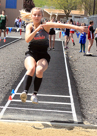 Elven, Remacle school records at final Jr. High meet In the final junior high track meet of the season, Sage Elven and Callie Remacle broke school records in the discus and high jump at Kamiah Tuesday, May 10. The meet was originally scheduled for Cottonwood but moved to Kamiah due to bad weather forecast for the Prairie. Elven’s was first in the discus with a mark of 110’0”, first in the shot put at 37’1½” and 22nd in the 100 in 16.29. Remacle won the high jump with a mark of 4’9”, breaking the record of 4’8” set by Sydney Shears earlier this season. Shears finished second in the event, equaling her personal best at 4’8”. Remacle was also 4th in the 200 hurdles in 36.66 and 10th in the 75 meter hurdles in 16.21. Also finishing first for the girls were all 4 relays. The 4x100 relay of Avery Riener, Shears, Lacey Schwartz and Sierra Oliver was first in 56.97. The 4x200 team of Avery Riener, Breanne Schwartz, Lacey Schwartz and Shears was first in 2:03.62. The 4x400 team of Avery Riener, Lillian Rehder, Elven and Evelyn Gehring was first in 5:05.75. The medley team of Avery Riener, Breanne Schwartz, Kennedy Riener and Shears was first in 2:10.76. Earning first place finishes for the boys team were: Payton Stamper in the 100 in 13.04 and the long jump at 16’8” and Ben Secrest in the 400 in 59.55 and the high jump at 4’10”. Stamper was also second in the 200 in 27.94. Other girls results: 100 meter dash-6th-Kennedy Riener, 15.10; 8th-Nadia Cash, 15.26; 15th-Rehder, 15.74; 18th-Olivia Uhlenkott, 16.10; 27th-Halee Rowland, 16.66; 28th Carmen Ove, 16.79; 33rd-Ella McLeod, 17.42 and 40th-Brooke Bennett, 18.59. 200-4th-Lacey Schwartz, 30.87; 9th-Erica Schlader, 32.89; 18th-Rowland, 35.51; 26th-Ove, 37.12; 27th-McLeod, 37.35; 30th-Bennett, 39.84. 400-2nd-Lacey Schwartz, 1:08.97; 3rd-Breanne Schwartz, 1:11.49; 5th-Uhlenkott, 1:13.78; 6th-Gehring, 1:14.18; 7th-Kylee Riggers, 1:16.81. 800-3rd-Aubree Geis, 2:54.30. 1600-4th-Maggie Nuxoll, 6:46.33. 75 Hurdles-15th-Nuxoll, 17.57. 200 hurdles-9th-Nuxoll, 38.76; 11th-Gehring, 39.46. Shot put-20th-Bennett, 17’0”. Discus-16th-Bennett, 41’10”. Long Jump-6th-Riggers, 11’7”; 9th-Rehder, 11’0”; 9th-Schlader 11’0”; 11th-Cash, 10’10½”; 32nd-Ove, 6’9”. 4x100 relay-2nd-Schlader, Kennedy Riener, Rehder and Cash I n 58.69; 7th-Hailey Hanson, Rowland, McLeod and Geis, 1:04.57. 4x200 relay-wnd-Schlader, Kennedy Riener, Hanson and Cash, 2:08.75; 5th-Uhlenkott, Gehring, Geis and Riggers, 2:12.42. 4x400 relay-2nd-Riggers, Breanne Schwartz, Hanson and Uhlenkott, 5:05.80. Medley-3rd-Rowland, Nuxoll, Remacle and Geis, 2:21.56. As a team the girls finished 2nd behind C.V. with 129 points. Other boys results: 100 meter dash-7th-Jackson Enneking, 14.08; 8th-Caden Armbrust, 14.11; 21st-Landon Riener, 16.39; 26th-Gabe Decaria, 16.59. 200 meters-14th-Kade Quintal, 34.52; 16th-Dylan Klapprich, 34.62; 20th-Decaia, 41.41; 21st-George Villamor, 42.72. 400-9th-Armbrust, 1:09.09; 13th-Ashton Martin, 1:11.97; 15th-Klapprich, 1:12.68; 21st-Villamor, 1:39.47. 800-7th-Armbrust, 2:35.73; 10th-Quintal, 2:54.82. 75 hurdles-11th-Riener, 16.03. 200 hurdles-6th-Riener, 39.22. Shot put-8th-Martin, 25’11”; 18th-Klapprich, 19’1”. Discus-18th-Klapprich, 51’9”. Long jump-16th-Decaria, 10’3”; 20th-Riener, 9’8”; 23rd-Villamor, 8’7”. Triple Jump-3rd-Quintal, 26’6½” 4X100 Relay-2nd-Enneking, Quintal, Martin and Stamper, 56.85. As a team the boys placed 4th with 71 points. March 15-Nez Perce Games at Kamiah 18-Prairie Meet 23-White Pine League Meet at Kamiah 26-Prairie Meet 30-Troy Invitational at Troy 5-Meet of Champions 13-14-District Meet at Lapwai 20-21-State Meet at Middleton |