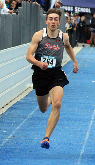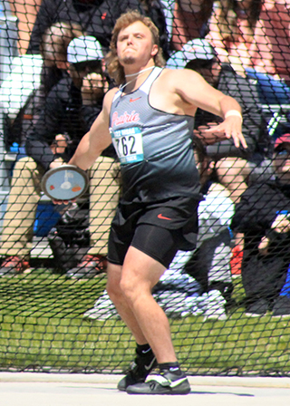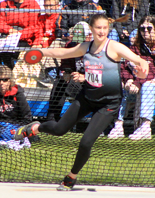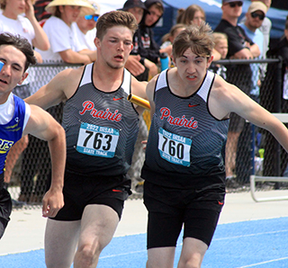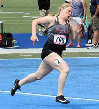 Kristin Wemhoff earned 3 state medals while Zach Rambo earned 1 at the State Track Meet held at Middleton High School May 20-21. Wemhoff finished third in the 100, 200 and 400 earning 3 medals. Her time in the 100 finals was 13.05. in the 200 final she finished in 26.51, a new personal best. In the 400 she finished in 59.04, a new personal best and only .04 shy of the school record set by Carrie Riener in 1977. Rambo finished 6th in the 200 meter final to earn his state medal. He had a time of 23.30. He was also 9th in the 100 in 11.77 and 12th in the 400 in 53.83. Shane Hanson finished 8th in the discus at 132’3” and tied for 8th in the high jump at 5’6”, a new personal best. T.J. Hibbard finished 9th in the discus at 132’2”. Brody Hasselstron finished 12th in the discus at 119’11”. Elizabeth Severns finished 14th in the girls discus with a new personal best of 88’10”. The boys 4x100 relay team of Jesse Cronan, Hibbard, Noah Geis and Rambo finished 8th in 46.53. As a team the girls were tied for 12th place with 18 pts. while the boys were 24th with 5½ points. ![]() Kristin Wemhoff runs the curve in the 400 meter dash where she finished third at state and nearly broke the school record. ![]() Zach Rambo in the 200 meter dash where he earned a State medal by finishing 6th. ![]() ![]() T.J. Hibbard takes the baton from Jesse Cronan in the 4x100 at State and then hands it off to Noah Geis. ![]() Shane Hanson finished 8th at State in the Discus. ![]() T.J. Hibbard was 9th at State in the discus. 'Brody Hasselstrom finished 12th at State in the discus. ![]() Elizabeth Severns set a net personal best as she finished 14th at State in the discus. |