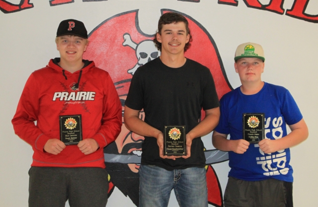 Prairie Baseball awards were given out last Thursday, June 2. From left Noah Behler received Most Improved; Chase Kaschmitter was named Batting Champion and Collin Ray received the Coaches Award.