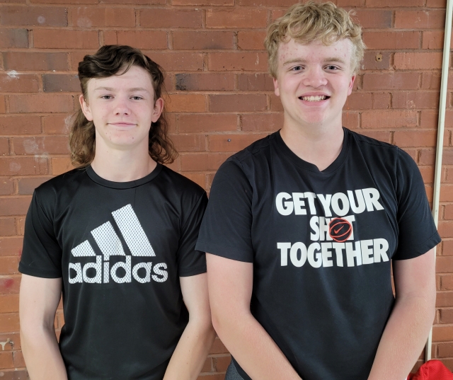 throughout the year. Women's March Madness Contest: Aubree Rehder and Meranda Klapprich Men's March Madness & NFL "Pick'em" Challenge": Cody Kaschmitter College Football Bowl Challenge: Wyatt Latimer Fantasy Football Champions: Alli Geis & Taylor Riener Cornhole Champs: Noah Behler & Cody Kaschmitter Each winner is shown in their desired shirt for winning the competition. The shirt had to be from whatever sport contest we did in class.