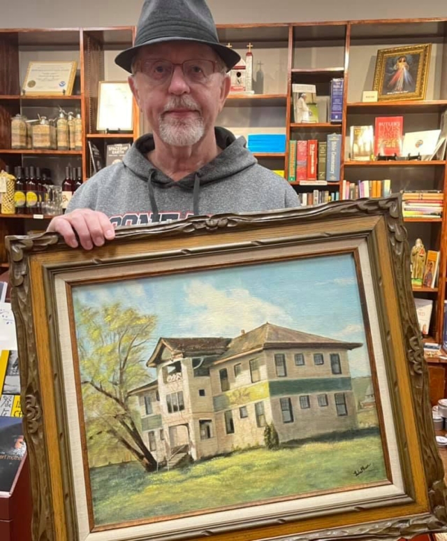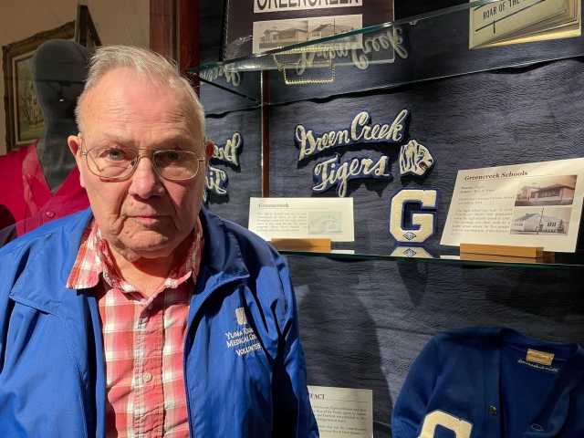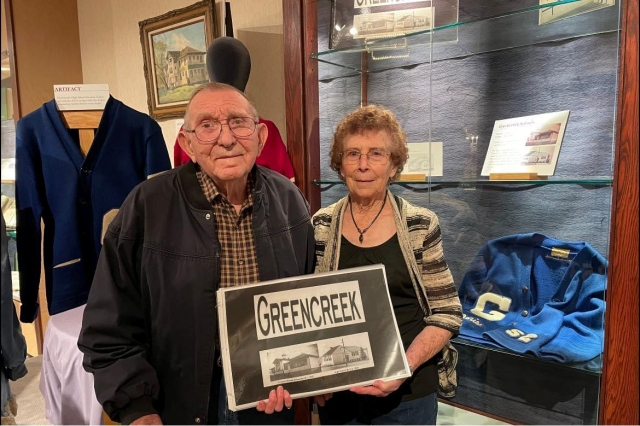 Taken from the Nov. 1946 Eagles Hi-Light Written by: Billy Hill “Girls are planning on wearing the pants in school from now on. The majority of the boys, I believe, are violently opposed, and few have turned incriminating looks upon the girls, and said with bitterness, “With such a shortage of available clothing, I have no desire to share what few pants that are available with them goofy dames.” Of course if the girls desire pants we boys will not utter a word to curb their infatuation for our Levi’s as it must be admitted, they are a sensible type of clothing. However, they can hardly blame us for having a few pangs of regret when the girls will wear the pants in school.” NOTE: Girls were never permitted to wear pants at Ferdinand High School. ![]() The Historical Museum’s spotlight exhibit of memorabilia from “Camas Prairie Schools of the Past. Photos on this page provided by Historical Museum. ![]() Ron and Doris Sonnen with some of the Greencreek High School memorabilia they lent the museum for their exhibit. ![]() J.D. Lauer also lent the museum some Greencreek Tigers memorabilia. ![]() Tim Forsmann is shown with a painting of the Ferdinand School which his mother Sylvia cherished. ![]() The Keuterville Leopards cheerleaders for the 1969-70 school year, the last year the Keuterville School was open. Pictured from left are Molly Uptmor, Della Uhlenkott, Mitzi Gehring, Carla Uhlenkott and Phyllis Schnider. Vicki Baerloicher donated the photo to the museum.