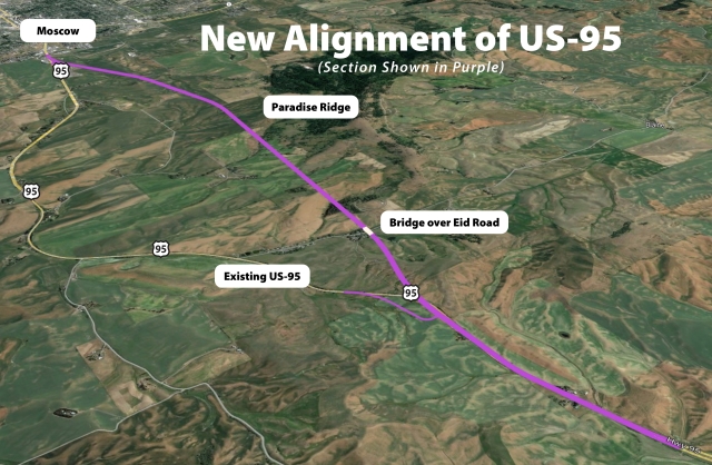 Highway 95 on a new alignment from Thorn Creek Road to Moscow began
