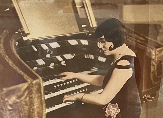 Rhodes playing the organ in the 1930’s. See article above left. Photo