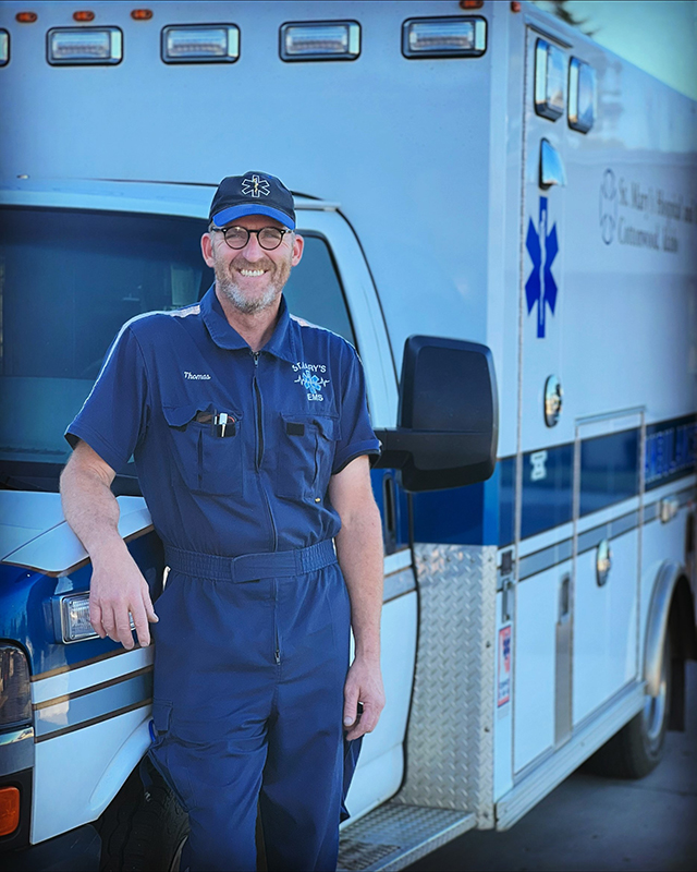 | Tom Seubert is an EMT for 20 years Tom’s selfless devotion and dedication to helping in our communities and serving others, as well as helping to train and develop other Emergency Medical Staff, shines a bright light on how important our EMT’s truly are. Tom is also a local farmer and rancher, along with his EMT duties - two things that are both passions for him, and that require an enormous commitment of time and training. Tom has spent many years furthering his education so that he could better serve his community. That’s 20 years of sleepless “on-call” nights, 20 years of responding to calls of every nature, and 20 years of juggling the demands of farming and ranching with the responsibility of caring for friends, neighbors, complete strangers, and loved ones. When an emergency call comes in, the EMT’s don’t know what they might encounter and, for the past 20 years, Tom has answered that call. When asked why he enjoys being an EMT, Tom says, “I like helping my community and helping people who are sick and/or injured. I also like the comradery of the Emergency Services Team. We become a family, and they are my second family.” Tom, thank you. We are so grateful for the work you do in our community. Thank you for helping others when they can’t help themselves, for showing up to difficult situations ready to help, and for being a hero to those in need. You are so appreciated and your St. Mary’s Health family, and the community you selflessly serve, are so thankful to you, and grateful for you. Tom would like to encourage anyone interested in becoming an EMT to contact him, Amy Phillips, or Shauntell Funke at St. Mary’s Health for more information. The need for qualified EMT’s is great, but the reward for saving a life is so much greater. ![]() Tom Seubert in front of the St. Mary's Ambulance. |