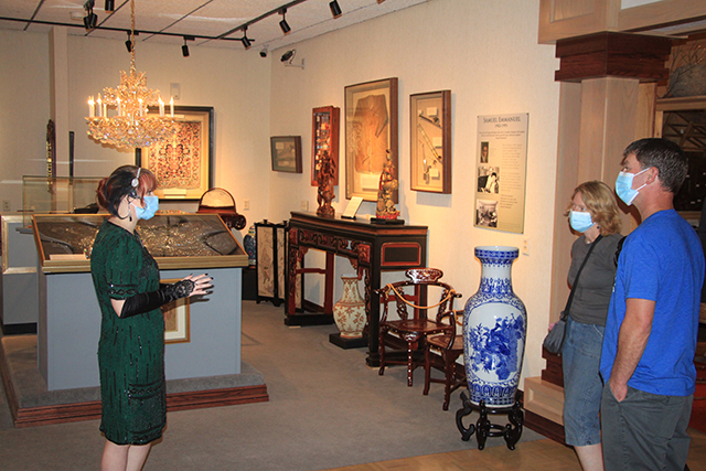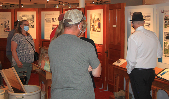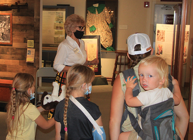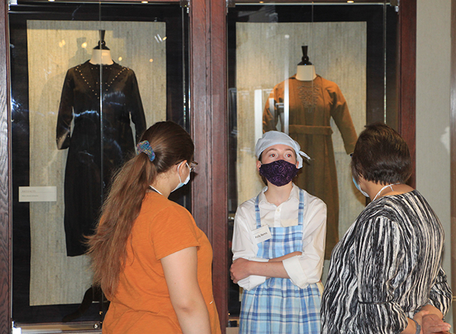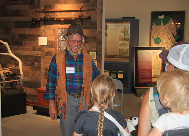 ![]() Beth Forsmann as Sr. Alfreda Elsensohn, who started St. Gertrude’s Museum in an attic of the old St. Gertrude’s School, which has been recreated in the current museum. The museum moved to the basement of the current school building, now Prairie High School, before moving to the current building. ![]() Dave Cloke as Buckskin Bill has a laugh with some museum visitors during the Raspberry Social. ![]() Taylor Wilkins as Winifred Rhoades Emmanuel talks about her life with museum visitors. The artifacts shown were collected by Emmanuel’s husband Sam and donated to the museum after she died. ![]() Monica Goeckner as Polly Bemis in front of a display of a couple of Polly's dresses.