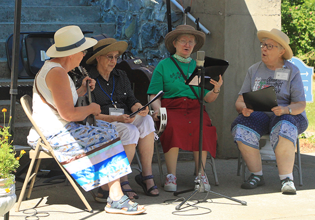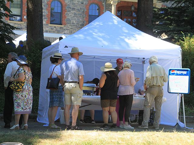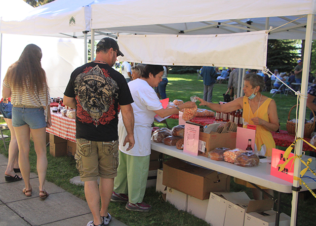 Pat Cloke as Frances Wisner talks about some of Wisner’s accomplishments such as a footbridge over the Salmon River and getting guides using aerial spotters for hunting banned. ![]() Courtney Toth as Sr. Johanna talks about the nuns coming to Idaho to found St. Gertrude’s Monastery. ![]() Tim Forsmann, right, portrayed Sabi Frei who was a worker at the Monastery and also drove school bus for the Academy. ![]() The raspberry products booth was well patronized as a customer checks out some raspberry popcorn. They also sold bread, jam and the ever popular raspberry wine. ![]() The Raspberry Shortcake was popular again this year. ![]() Many people looked through the items in the surplus booths. ![]() ![]() ![]() Some of the live music acts that performed on the Monastery steps throughout the day. ![]() ![]() The Cottonwood Lions Club and The Hangout provided food options for event goers. . |