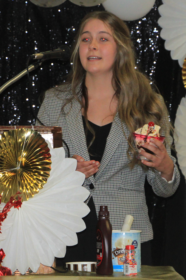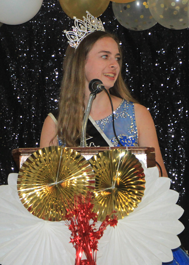 Idaho County Free Press Enneking, 17, will be a senior at Prairie High School this fall. She is the daughter of Bob and Jennifer Enneking of Cottonwood. Her grandparents are Dave and Debbie Todd of Grangeville and the late Frank Enneking and Dolores Enneking of Cottonwood. Another memory that’s close to her mind is when the girls were dress shopping in Boise and someone ran up the steps of the house wherethey were staying. “I thought we were being robbed, but it was actually the Boy Scouts,” she laughed. Enneking is a member of Keuterville Livestock 4-H Club, and at school, she is involved in volleyball, basketball, softball, Prairie League and Knowledge Bowl. She has two brothers, Payton Moore, 24, and Jackson Enneking, 14. When she isn’t in school, Enneking enjoys church activities, working on the family farm. and baby-sitting. Following graduation, she plans to attend the University of Idaho and major in either prephysical therapy or history and English to become a teacher in those subjects. ![]() Photos from the Royalty Luncheon ![]() The current royalty along with the 2023 candidates. Back from left are Payton Brown, Makenna York, Abbie Frei and Gracelynn Missman. Front from left are 1st Princess Kayle Graves, Queen Chloe Rowland and 2nd Princess Riley Enneking. ![]() The 4 candidates. From left are Payton Brown, Makenna York, Abbie Frei and Gracelynn Missman. ![]() Queen Chloe Rowland giving her speech. ![]() 1st Princess Kaylee Graves giving her speech. ![]() 2nd Princess Riley Enneking giving her speech. ![]() Gracelynn Missman giving her speech. ![]() Abbie Frei giving her speech. She compared the Fair and 4-H to a sundae and wound up making an actual sundae which her father Steve got to enjoy. ![]() Makenna York gives her speech and has a timeline from a little girl dreaming of being royalty through 4-H and earning ribbons. The sash and crown are from when he mother, then Heidi Agee, was Queen in 1996. ![]() Payton Brown gives her speech and connects her time getting started in 4-H at the Asotin County Fair then moving to Grangeville and the Idaho County Fair. |