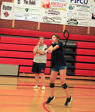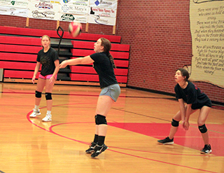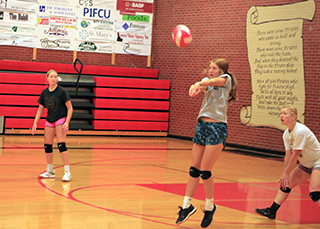 33 turn out for Prairie Volleyball Prairie has a huge turnout for volleyball this season with 33 players. Head coach Julie Schumacher has broken them out to 9 on varsity, 10 on JV and 14 on the C team. Joining her as coaches this year are new JV coach Erika Shears and coming back to the squad after taking a few years off is Marlene Forsmann as the C coach. Prairie was set to host a preseason Jamboree next Tuesday, August 23, but that has been called off due to a situation with the gym floor refinishing. The gym floors are going to be done Aug. 17-19 instead of back in June like originally scheduled. With the floors being done this week, the volleyball team will lose 3 days of practice and after practicing Tuesday morning, won’t practice again until Monday. Also due to the gym floors being done this week, it was felt best to cancel the Jamboree as the finish needs to cure for a few days. Players on the varsity this year are: Tara Schlader, Kristin Wemhoff, Riley Enneking, Julia Rehder, Chloe Rowland and Holli Schumacher, all seniors; Alli Geis and Taylor Riener, both juniors and Lexi Schumacher, a sophomore. On the JV team are Ember Martin, a junior; Kaylie Lockett, Ashlyn North, Aubree Rehder, Ellie Nuxoll and Tamden Pecarovich, sophomores; and Kylie Schumacher, Hailey Hanson, Sydney Shears and Sierra Oliver, freshmen. Making up the C team are Miranda Klapprich and Chayla Christopher, both juniors; Harlee Brannan, Rebecca Seubert, Morgan Pack, Clarise Rehder and Grace Uhlenkott, sophomores; and Katelyn Riener, Avery Riener, Bailey Key, August Warden, Breanne Schwartz and Lacey Schwartz, freshmen. With the Jamboree cancelled, Prairie’s first action will take place on Saturday, August. 27 when the varsity team travels to New Plymouth for a tournament and the JV and C teams travel to Genesee for a JV tournament. ![]() Alli Geis serves as Kristin Wemhoff awaits her turn at the service line. ![]() Holli SChumacher digs a serve as Alli Geis also makes a move to the ball. Taylor Riener watches. ![]() Julia Rehder makes a pass as coach Julie Schumacher watches. ![]() Riley Enneking makes a pass during a serve receive passing drill. Also shown are Taylor Rienr and Julia Rehder. ![]() Tara Schlader makes a pass. Also shown are Taylor Riener and Kristin Wemhoff. PIRATES VOLLEYBALL SCHEDULE FOR 2022