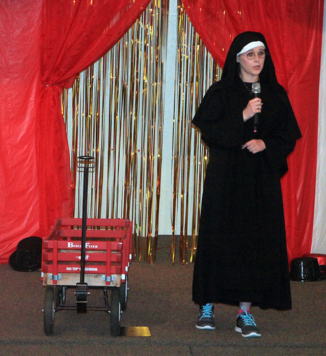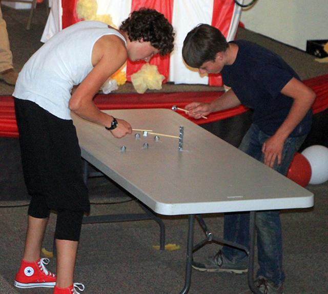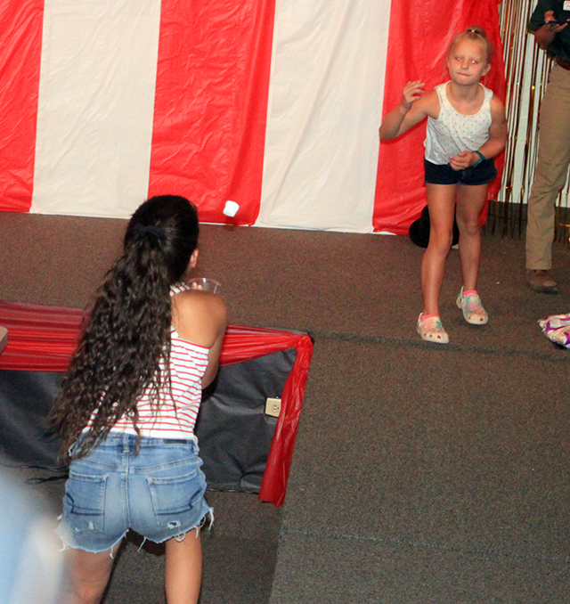 ![]() That's Arlene Baerlocher inside the dog costume performing to "You Ain't Nothing but a Hound Dog at the Two-Minute Talent Show. ![]() Tate and Jill Manley performed a dance at the Two-Minute Talent Show. ![]() Brooklyn and Audra Spencer performed "Life is Good." ![]() Taylor Wilkins did a living history performance as Sister Herman Joseph Mager. See next week's update for the script she had. ![]() Chael Manley and Evelyn Hickman performed to "Kung Fu Fighting." ![]() Marie and Madison Duman sang a duet to "I Close My Eyes." Since there were exactly 2 entries in each age group, event organizer Theresa Groom declared every one tied for first place with a check of $75 given to each act. ![]() ![]() After the regular acts were done there were some "Minute to Win It" games. Two of the 3 games were: how many nuts can you stack in a minute in the upper photo and how many marshmallows could be caught in a plastic cut in the lower photo. There was also a frog toss, trying to get the most in a bucket within a minute.
