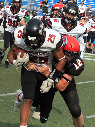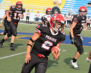 A rebuilding Prairie football team struggled in their opening game of the season as they lost to Oakley 0-56 in the 8-Man Showcase at Middleton Saturday, August 27. Oakley, who won the last two state championships, looked like they might be a good bet to win a third straight in the way they manhandled the Pirates. ![]() Prairie started the game well as they received the opening kickoff and picked up a couple of first downs. After an 8 yard pass from Eli Hinds to Ben Elven, Trenton Lorentz picked up 10 yards for a first down at the Prairie 36. A couple of false start penalties set the Pirates back but on third and 13, Hinds passed to Lorentz . Lorentz caught the ball then fumbled but Blake Bunce recovered the ball and Prairie gained enough yardage for another first down. Two plays then netted 0 yards and another false start had the Pirates facing third and 15. Hinds fumbled the ball in the backfield and Oakley recovered at the Prairie 35. It took the Hornets just 2 plays to take the lead as they scored on a 29 yard pass play. Oakley added the 2-point conversion on a pass for a 0-8 lead. Turnovers killed the Pirates as they had the ball just 2 plays when Oakley intercepted a pass at the Prairie 42. The Hornets needed 8 plays to score this time with quarterback Porter Pickett going in from 3 yards out. The 2 point pass was dropped as Oakley now led 0-14. Prairie managed to pick up another first down on their next possession before turning it over again. Hinds converted a fourth and 5 with a 6 yard run but 2 plays later Oakley intercepted another pass. This time on a great catch by the defensive back as the ball went off the Prairie receivers hands and the defender made a diving catch at the Prairie 44. 3 plays later Oakley scored on a 23 yard run on the final play of the first quarter. They added the 2-point run for a 0-22 lead. On Prairie’s next possession they went for it again on fourth down deep in their own end but this Lorentz was stopped short on a fourth and 2 play and Oakley took over at the Prairie 24. Two plays later they scored again and added the 2-point run to make it 0-30. Prairie punted on their next possession but a bad snap led to a short punt as Oakley took over at the Prairie 30. Prairie got a break when Colton McElroy intercepted an Oakley pass on the next play giving Prairie back the ball at their own 25. Prairie was able to move the ball this time as Hinds converted a third down with a 7 yard run and Lorentz followed with a 12 yard run. A facemask on the play added 5 more yards as Prairie crossed the 50 for the first time in the game. Hinds ran for 16 yards to moved the ball to the Oakley 32. At that point things turned against the Pirates as a holding penalty set them back. They wound up missing on a pass on fourth and long from the 38 with Oakley taking over on downs. Oakley then completed a wide open screen pass to the right with the receiver having 3 blockers and no defenders within 10 yards. The play went for 62 yards and another Oakley touchdown. The 2-point try failed but Oakley now led 0-36. Prairie got deep into Hornet territory on their final possession of the first half. They started at the 35 and got a first down on a late hit penalty that put them at the 49. Hinds connected with McElroy for 23 yards on the next play to move the Pirates to the Oakley 28. A 7 yard run each by Lorentz and Hinds moved the ball to the 14. At that point the drive stalled as Lorentz was stopped after a 3 yard gain on fourth and 7 from the 11. Oakley took over and went to a 2-minute drill passing 4 straight plays to move the ball to the Prairie 37. They then ran the ball and time ran out in the half with the ball at the 20. Oakley received the second half kickoff and Prairie was able to force a punt after just 2 yards gained on 3 plays. Prairie took over at their own 36 but wound up turning the ball over on a fumble 3 plays later with Oakley taking over on the Prairie 39. The Hornets needed just 1 play to score. The 2-point run was stopped leaving the Hornets with 0-42 lead. That started the running clock mercy rule. This is the first time Prairie has been on the wrong side of the mercy rule since the 2013 season when they lost to eventual state champion Kamiah. Prairie fumbled again on their first play after the ensuing kickoff with Oakley taking over at the Prairie 24. Hinds wound up leaving the game with an injury after the play. Oakley scored again and added the 2-point try for a 0-50 lead. Another fumble quickly ended Prairie’s next possession with Oakley taking over at the Prairie 6 yard line. Prairie was able to stop the Hornets forcing a turnover on downs at the 3. The Pirates picked up a first down on an 8 yard run by Lorentz that moved the ball to the 16. 3 plays later they went for it on fourth down but a bad snap killed the play and McElroy’s pass fell incomplete. Oakley took over at the 20 and converted a fourth down before scoring on what turned out to be the final play of the game to cap a 0-56 win. It was the first time the Pirates had been shutout since a 0-50 loss to Lapwai in 2004, the year that Prairie dropped down to the 1A division and played 8-man football for the first time since the 1969 season. Prairie wound up with 161 yards of offense, 101 on the ground. Lorentz had 68 yards rushing on 19 carries and caught 2 passes for 26 yards. Hinds gained 42 yards rushing on 13 carries and completed 7 of 13 passes for 60 yards with 2 interceptions. McElroy caught 3 passes for 21 yards and Elven caught 2 for 13 yards. Oakley had 100 yards rushing on 23 attempts and 269 yards passing for 369 total yards. The Pirates wound up with 6 turnovers on 4 fumbles lost and 2 interceptions. Prairie is 0-1 on the season and opens league play this Friday, Sept. 2 as they host Troy in their home opener. Prairie 0 0 0 0 - 0 Oakley 22 14 14 6 -56 O-Duncan 29 pass from Pickett (Praegitzer pass from Pickett) 7:03 1st O-Pickett 3 run (pass failed) 4:13 1st O-Bingham 23 run (Bingh