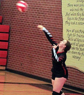 Lady Pirates lose twice The Prairie Lady Pirates lost a pair of league matches last week. On Tuesday, Sept. 6, they lost a home match in 3 games to Potlatch, 19-25, 21-25, 23-25. On Thursday, Sept. 8 they traveled to Genesee and lost in 4 games 16-25, 11-25, 26-24, 18-25. Vs. Potlatch The Lady Pirates were swept twice by Potlatch last year and it started that way again. ![]() In the opening game Potlatch took the lead with a 5-0 run that turned a 2-2 tie into a 2-7 deficit for Prairie. Potlatch never trailed again the rest of the opening game. Prairie had a nice run late in the game when Riley Enneking went back to serve after a block by Alli Geis. Enneking served 4 straight aces to cut the deficit to 18-21. However Prairie scored just 1 more point in the game. Potlatch bricked a served to start the second game and Lexi Schumacher followed with an ace for a 2-0 lead. Prairie still led 3-2 when Potlatch scored 6 straight to take the lead for good. Prairie managed to cut the deficit to just 2 at 9-11 after 2 aces by Geis and rallied later from a 13-20 deficit to pull within 21-24 on a kill by Kylie Schumacher. However Potlatch then scored the game winning point. Lexi Schumacher served Prairie to a 3-0 lead in the third game with an ace and 2 kills by Tara Schlader. Potlatch came back for a 3-4 lead but Prairie took back the lead at 5-4 and also led at 9-8 and one final time at 21-20. Potlatch scored a sideout kill to tie the game at 21 and then scored 3 more points to get to match point. A kill by Schlader and an ace by Schumacher got them back within 1 at 23-24 before Potlatch scored a kill for the match-winner. Schlader had 13 kills, 4 assists and 2 aces in the match. Geis had 6 kills, including 2 blocks, and 2 aces. Julia Rehder had 5 kills, 1 assist and 3 aces. Kylie Schumacher, in her first varsity action, had 3 kills, including a block. Lexi Schumacher had 3 kills, 19 assists and 4 aces. Kristin Wemhoff had 2 kills, 1 assist and 1 ace. Taylor Riener had 1 kill. Enneking had 3 assists and 7 aces. Prairie managed to win the JV match after losing the first game, 18-25, 25-16, 15-9. Prairie never led in the first game as Potlatch took a 0-3 lead and led by as many as 8 points on their way to a 7 point win. In the second game Prairie fell behind 0-4 but rallied to take their first lead of the night after a 4-point serving run by Sydney Shears that featured 2 aces and a kill each by Kylie Schumacher and TamdenPecarovich. That put Prairie on top 9-6. Potlatch took back the lead at 10-11 but Prairie took the lead for good on a kill be Hailey Hanson that made it 13-12. Pecarovich followed with 3 service points including an ace plus a kill each by Sierra Oliver and Hanson. After that it was mostly sideouts until a tip by Shears sent Hanson to the service line for 4 straight points. She had 3 aces and Shears added another kill. After a sideout, Aubree Rehder scored a sideout kill and Shears served an ace to even the match at a game each. Pecarovich served an ace to start the decisive third game and Ember Martin followed with a kill. Although the game stayed close until late, Prairie never trailed. They broke the game open when Hanson scored a kill to send Martin to the service line at 11-7. After 3 straight aces Prairie was at match point. Potlatch fought off match point twice before missing a serve to give Prairie the match. At Genesee In the first game at Genesee, Prairie led just once, at 1-0 after a kill by Schlader for a sideout. Genesee