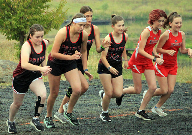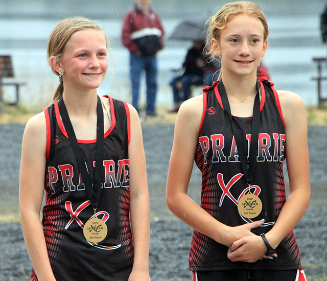 Eagle Island State Park for the Bob Firman Invitational. PIRATES CROSSCOUNTRY SCHEDULE FOR 2022Spartan Invite The Spartan Invite was held at Deyo Reservoir on Wednesday, Sept. 21.The Prairie/Grangeville boys team took first in the team competition. Top Prairie runner was Chase VonBargen who placed 6th in 21:27 and earned a medal. Secrest was 13th in 22:28. Enneking was 20th in 23:42. Poxleitner was 25th in 24:59. Dylan Klapprich was 33rd in 27:43. Riener was 34th in 29:07. The Grangeville athletes running for Prairie were Ryan Detweiler, 3rd in 19:49; A.J. Rose, 4th in 20:43; Simeon Sanchez, 5th in 21:05; Gabe Bybee, 14th in 22:37; Ayden Arnett, 23rd in 24:42 and Parker Farmer, 24th in 24:56. Both Goeckner and Severns earned medals in the girls high school race as the top 10 finishers all received medals. Goeckner was 6th in 26:55 and Severns was 9th in 30:06. Grangeville athletes running for Prairie were Kylie Rasmussen, 3rd in 26:36, and Kacee Evans, 5th in 26:54. All of Prairie’s junior high boys runners were awarded medals. In the boys race Jones was 3rd in 14:10. Hanson was 6th in 15:01. Decaria was 7th in 17:25 and Villamor was 8th in 18:35. In the girls race Gehring was 8th in 15:03. Olivia Uhlenkott, in her first race of the season, was 9th in 15:09. Kehler was 11th in 15:30. Gehring and Uhlenkott each were awarded medals. Bob Firman Invitational The Bob Firman Invitational held at Eagle Island State Park near Eagle, Idaho, was a huge meet with over 4200 competitors.Prairie ran in the JV races which had enough competitors they split them into two races each. The boys race Prairie was in had 341 runners and 26 teams. Prairie placed 22nd as a team. VonBargen was the Pirates top finisher placing 145th in 20:34.7. Enneking was 198th in 21:35.0. Secrest was 226th in 22:00.2. Poxleitner was 282nd in 23:21.3. Klapprich was 300th in 26:07.6. Uptmor was 327th in 26:07.6. Riener was 328th in 26:34.0. In the girls race there were 164 runners. Goeckner was 78th in 26:17.1. Severns was 133rd in 29:25.9 and Callie Remacle was 144th in 30:51.0. ![]() Cousins Olivia Uhlenkott and Evelyn Gehring each earned medals in the girls junior high race at the Spartan Invite. ![]() All of Prairie's Junior High Boys runners earned medals at the Spartan Invite. From left are George Villamor, Gabe Decaira, Kade Hanson and at far right is Matthew Jones. ![]() Prairie High School runners at the start of the girls race at the Spartan Invite last week. From left are Natalie Goeckner, Elizabeth Severns, Callie Remacle and Miranda Klapprich as well as Kylee Rassmussen and Kacee Evans, two Grangeville girls running with Prairie. ![]() From left are Jackson Enneking, Chase VonBargen and Ben Secrest at the Spartan Invite. They are squinting as they were running into the rain. ![]() ![]() Natalie Goeckner, who earned a medal, and Elizabeth Severns at the Spartain Invite. ![]() ![]() Callie Remacle and Miranda Klapprich at the Spartan Invite. Unfortunatley neither was able to finish the race. ![]() ![]() Morgan Poxleitner, left and Dylan Klapprich and Landon Riener at the Spartain Invite. ![]() ![]() ![]() Evelyn Gehring, Olivia Uhlenkott and Avery Kehler in the junior high girls race at the Spartan Invite. ![]() ![]() Matthew Jones and Kade Hanson run across the dike near the end of the junior high boys race. ![]() ![]() Gabe Decaria and George Villamor, also on the dike near the end of the junior high boys race. OCTOBER 1-Inland Empire Championships, Lewiston