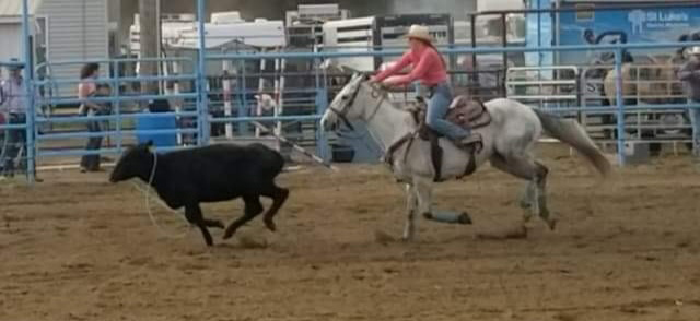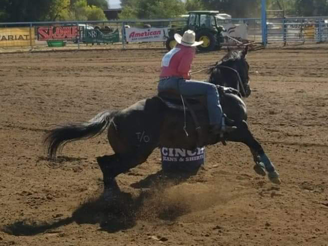 15-16. Friday she placed in barrels, poles and goats. Saturday she won