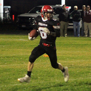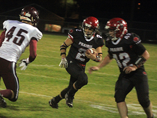 The Prairie Pirates were thoroughly dominated by the Kamiah Kubs as the Kubs beat them 0-52 at Prairie’s Homecoming game Friday, Sept. 30 at Cottonwood. ![]() The Kubs defense completely shut down the Pirates offense as Prairie mustered just 71 yards of offense in the game. The game actually started well for the Pirates as Kamiah the ball on their second play from scrimmage with Shane Hanson making the recovery at the Kamiah 31. The Prairie offense couldn’t move the ball though and quarterback Colton McElroy was sacked on fourth and 8 giving Kamiah back the ball at their 35. 3 plays later Kamiah tried their first pass play of the game and it went for a touchdown as quarterback Dave Kludt connected with Kaden Degroot for 45 yards. Kamiah added the 2-pointer for a 0-8 lead. Prairie went for it on fourth down from their own 36 on their next possession and McElroy’s pass was intercepted at the Prairie 47. The Prairie defense forced the Kubs to turn the ball back on downs with Prairie taking over at their own 45. Eli Hinds picked up 7 on first down and McElroy passed to Jake Quintal for 4 yards and Prairie’s initial first down of the game. 4 plays later, McElroy’s fourth down pass to Levi Gehring went for 9 yards but came up inches short of a first down at the Kamiah 33. Kamiah took the ball and needed 10 plays to score their second touchdown. Colton Ocain covered the final 29 yards on a run and Kludt ran in the 2-pointer for a 0-16 lead. Prairie picked up a couple of first down on their next possession but wound up losing their quarterback. McElroy ran a keeper on third and 5 for 6 yards and 1 first down. He then gained 10 on a fourth and 9 for another first down but came up limping. He stayed in the game but a fumbled snap on third and 3 at the Kamiah 39 led to a turnover. At that point McElroy struggled to make his way off the field and wound up missing the rest of the game. It appeared to be a foot or ankle injury. Kamiah took the ball at their own 43 and marched downfield for another touchdown. They add the 2-pointer for a 0-24 lead. Tailback Hinds moved to quarterback on Prairie’s next possession with Gehring moving into the tailback spot. A false start penalty lead to the Pirates again turning the ball over on downs, this time at their own 34. Kamiah need just 3 plays to add another touchdown and take a 0-32 lead with 1:15 left in the half. Prairie fumbled the ball right back 2 plays later and the Kubs added another touchdown with 1 second to play. This time their 2-point try failed leaving the Kubs with a 0-38 lead at the half. Prairie received the second half kickoff and on third and 11 from their own 34, Hinds had his pass intercepted and returned for a touchdown. After the 2-point run was stopped that left the Kubs with a 0-44 lead and invoked the running clock mercy rule. Prairie again turned the ball over on downs with Kamiah taking over at the Prairie 34. Two holding penalties led to the Kubs having to punt for the first time in the game from the 50. Prairie took over at their own 22 and with the help of a personal foul penalty against Kamiah, moved out to the 40 before fumbling the ball away again. Kamiah took over at the Prairie 37 and despite another holding penalty, were able to move the ball downfield for another touchdown and a 0-52 lead with 8:08 left to play. Prairie fumbled the ball away again on their next possession at the end of what would have been a first down run of 16 yards by Hinds. At that point both teams put in their subs. Kamiah was forced to punt again and Prairie then ran out the clock. Prairie had 34 yards rushing on 34 attempts. Hinds had 38 yards on 15 carries. McElroy completed 3 of 7 passes with an interception for 22 yards. Hinds completed 3 of 8 with an interception for 12 yards. Levi McElroy was 1 for 1 for 6 yards. Gehring caught 4 passes for 26 yards. Ben Elven caught 2 for 7 yards and Quintal caught 1 for 4 yards. Kamiah had 187 yards rushing on 40 carries led by Ocain who had 74 yards on 12 carries. Kludt completed 8 of 9 passes for 154 yards. Degroot had 2 catches for 77 yards and 2 touchdowns. Ocain had 3 catches for 47 yards. The Prairie defense was led by Hanson who had 4.5 tackles plus a fumble recovery. Carter Shears had 4 tackles. Elven had 3.5 tackles. Noah Behler and Gehring each had 3 tackles. Hinds had 2.5 tackles. Dylan Uhlenkott had 2 tackles and Quintal had 0.5 tackles. The loss is Prairie’s first league loss since the 2017 season opener against Genesee, a span of 32 straight White Pine League games, not counting forfeits. It is also the first time Prairie was mercy ruled in a league game since Kamiah did it in their 2013 state championship season. Prairie is now 3-1 in league play and 3-2 overall. Their next game is this Friday, Oct. 7, at Lapwai, at 7 p.m. Prairie 0 0 0 0 - 0 Kamiah 8 30 6 8 -52 K-Degroot 45 pass from Kludt (Weddle run) 9:22 1st K-Ocain 29 run (Kludt run) 11:57 2nd K-Sams 3 run (Oatman pass from Kludt) 4:09 2nd K-Degroot 32 pass from Kludt (Usher run) 1:14 2nd K-Kludt 1 run (pass failed) 0:01.0 2nd K-Oatman 42 interception return (run failed) 10:52 3rd K-Kludt 7 run (Usher run) 8:08 4th ![]() Eli Hinds carries the ball as Carter Shears gets ready to block a Kamiah defender. ![]() Freshman Levi Gehring carries the ball for the Pirates 27-vs. Oakley at Middleton, 5:00 p.m. MDT -lost 0-56 SEPTEMBER