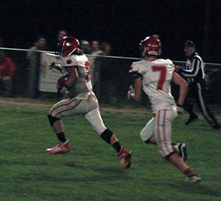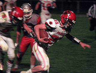 In a game with state playoff implications the Prairie Pirates were edged by the Clearwater Valley Rams 30-34 at Kooskia Friday, Oct. 14. ![]() C.V. was looking to clinch a berth in the state playoffs while Prairie was looking to keep their playoff hopes alive. With the loss it would appear that Prairie has to depend on receiving an at-large berth as only the top 3 league finishers are guaranteed a berth and if Lapwai beats Genesee this week, they would have the tiebreaker in head to head competition if Prairie beats Logos and ties the Wildcats for third. It looked like Prairie might pull off the win at C.V. when they took the lead at 30-28 in the third quarter. The defense was able to stop C.V. on the Rams’ next 2 possessions but the Rams were able to put together a final drive and scored the go-ahead touchdown with 19.7 seconds left in the game. To get to that point Prairie had to come from behind a couple of times in a back and forth game. C.V. received the opening kickoff and marched down the field to score the game’s first points on a 1 yard run by quarterback Louie Fabbi. Prairie came right back. Trenton Lorentz was back after missing 3 games following an appendectomy and Colton McElroy was back at quarterback after missing last week’s game due to illness. Prairie picked up their initial first down of the game thanks to an offsides penalty on C.V. and on the next play, a targeting penalty moved the ball to the C.V. 28. Prairie faced fourth and 5 at the C.V. 23 when McElroy threw his first pass of the game. He found tight end Shane Hanson wide open inside the 10 for a 23 yards scoring play. Prairie then took their first lead of the game when Eli Hinds passed to Hanson for the 2-point conversion that made it 8-6. The lead didn’t last long though as C.V. got a 77 yard touchdown run from Bass Myers. Fabbi ran in the 2-pointer to make it 8-14. On Prairie’s next possession the Pirates faced fourth and 8 at their own 47 when Hinds connected with Hanson for a 43 yard gain on a halfback option pass that set up first and goal at the 10. McElroy ran the ball into the end zone on the next play to tie the game. McElroy then ran in the 2-pointer to put Prairie back on top at 16-14 early in the second quarter. C.V. answered back with a 10 play, 57 yard drive where they had to overcome a couple of holding penalties to retake the lead. Fabbi scored on a 5 yard run and Myers added the 2-pointer to put C.V. back on top at 16-22. Prairie came right back with an 11-play, 62 yard drive where they also had to overcome a holding penalty. Big plays in the drive were a 23 yard gain by Hinds on a third and 1 and a 15 yard gain on fourth and 5 by Hinds that set up first and goal at the 10. 3 plays later, McElroy scored from 3 yards out to tie the game. C.V. stopped the 2-point try leaving the score tied at 22 with 38 seconds left in the first half. Prairie was stopped on their first possession of the second half after McElroy was sacked for an 11 yard loss that led to a turnover on downs at the Prairie 34. C.V. got hit with 2 penalties worth 25 yards but still managed to score the go-ahead touchdown when Fabbi passed toa wide open Myers for a 38 yard touchdown play. Prairie stopped the 2-point try leaving the Rams with a 22-28 lead. Prairie started from their own 45 on the ensuing possession and moved into C.V. territory on a 10 yard gain by Lorentz that had 15 yards added on for a helmet to helmet penalty that put the ball on the C.V. 28. Two penalties set the Pirates back to the 39. Two plays later McElroy connected with Hinds on a slant pattern that Hinds took 38 yards for a tying touchdown. McElroy ran in the 2-pointer to give Prairie a 30-28 lead with 5:09 left in the third quarter. A sack of Fabbi on third down for a 9 yard loss by Dylan Uhlenkott and Hanson forced C.V. to punt from their own 20 with Prairie taking over at their own 45. The Pirates moved the ball down to the C.V. 24 before the drive stalled and they turned the ball over on downs. C.V. was able to moved to the Prairie 42 thanks in part to a 15 yard penalty on the Pirates. Fabbi was hurt on the play and Carson Schilling took over at quarterback for a couple of plays. McElroy intercepted Schilling’s only pass attempt at the Prairie 14 and returned it to the 22. A late hit penalty moved the ball out to the 37. Prairie got hit with a 15 yard penalty of their own and were forced to punt from their own 18 with C.V. taking over at the Prairie 38. The Rams converted a fourth down and 13 play from the Prairie 42 when Fabbi, who was back in at quarterback, connected with Schilling for 14 yards. A scramble by Fabbi for 19 yards moved the ball down to the Prairie 12. Two plays later Fabbi found Schilling open in the end zone for the go-ahead touchdown with 19.7 seconds to play. Noah Behler sacked Fabbi on the 2-point try leaving the score at 30-34. Prairie tried a lateral on the kickoff return with Hinds throwing across the field to McElroy who took the ball 25 yards to the 50. Prairie then tried a couple of long passes from Hinds to Lorentz who got behind the defender both times but was unable to get his hands on the pass either time. Prairie wound up with 244 yards of offense to 365 for C.V. The Pirates had 140 yards rushing on 41 attempts led by Hinds who had 80 yards on 14 carries. Lorentz, still not 100%, had 39 yards on 13 carries. McElroy completed 2 of 5 pass attempts for 61 yards while Hinds was 1 for 3 for 43 yards. Hanson caught 2 for 66 yards and a touchdown while Hinds caught 1 for 38 yards and a touchdown. On defense Hinds led the team with 6 tackles. McElroy had 5 tackles and an interception. Uhlenkott and Lorentz also had 5 tackles each. Behler had 3 tackles. Hanson had 2 tackles and Blake Bunce and Carter Shears each had 1 tackle. Behler had 1 sack and Uhlenkott and Hanson each had half a sack. C.V. had 251 yards rushing on 36 attempts led by Myers with 114 on 14 carries and Fabbi with 98 yards on 16 carries. Fabbi comple