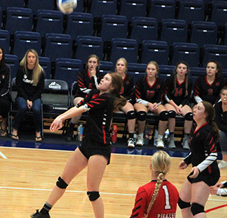 Lady Pirates' season ends The Prairie Lady Pirates saw their season come to an end with a 17-25, 22-25, 26-24, 14-25 loss to Potlatch on Tuesday, Oct. 18 at the District Tournament at the LCSC Activity Center in Lewiston.The loss left them with a 5th place finish at District. In the opening game Prairie scored first when Lexi Schumacher served an ace. However that was they only lead they had in the game. The last time it was tied was at 3-3 then Potlatch scored 10 of the next 13 points for a 6-14 lead. Prairie was able to get back within 5 at 14-19 after 2 aces by Julia Rehder. They again got within 5 at 15-20 after a sideout kill by Tara Schlader but that was as close as they would get. They again scored first in the second game on a kill by Kylie Schumacher and an ace by Lexi Schumacher. Potlatch took the lead for good with a 3 point service run that made it 4-7. Prairie got back within 1 on a kill each by Alli Geis and Rehder at 6-7 but then fell behind by as many as 5 at 7-12. They again got within 1 at 13-14 after a kill by Rehder. They were able to stay close but couldn’t quite retake the lead. Their last big rally came at game point when Potlatch scored on an ace to make it 19-24. Kylie Schumacher scored a sideout kill, Lexi Schumacher served an ace and Schlader scored a kill to cut the lead to 22-24 before Potlatch finally got the game-winning kill. For the third straight game Prairie scored first when Potlatch was called for a net foul. Poltatch came back to take a 3-4 lead but a kill by Geis tied it. A kill by Schlader and a block by Geis made it 6-4. Another net violation made it 7-4. Potlatch got back within 1 at 7-6 before missing a serve. During that rally Geis left the game with a leg injury and didn’t return. Taylor Riener took her place in the lineup. Rehder served an ace and then missed a serve. Schlader scored a sideout kill and Riener served 2 aces for a 12-7 lead. After 2 Potlatch points Prairie got 2 kills by Schlader and an ace by Lexi Schumacher for a 15-9 lead. Potlatch then looked like they were going to take control as they scored 10 of the next 11 points and took a 16-19 lead. Kylie Schumacher scored a sideout kill and Kristin Wemhoff scored on a dig to make it 18-19. Prairie was down 19-21 when Rehder scored a sideout kill and then served 2 aces. A kill each by Lexi Schumacher and Schlader made it 24-21. A sideout and then 2 more points by Potlatch tied it at 24. After a Prairie time out, Schlader scored a kill and then Kylie Schumacher scored a game-winning block. It was the first single set win by Prairie against Potlatch since the 2020 season. All that seemed to do was make Potlatch made though as they jumped out to leads of 0-6 and 3-13 in the fourth game. Prairie was able to cut the lead down to 4 at 14-17 after an ace by Kylie Schumacher and 2 kills by Schlader but Potlatch then scored the next 6 points and went on to close out the match. Schlader had 19 kills in the match plus an assist. Rehder had 11 kills, 3 assists and 6 aces. Kylie Schumacher had 11 kills, including 3 blocks and 1 ace. Geis had 6 kills, including 2 blocks. Wemhoff had 4 kills and 1 assist. Lexi Schumacher had 2 kills, 41 assists and 6 aces. Riener had 1 assists and 2 aces. Prairie ends their season with a record of 9-13. ![]() Tara Schlader makes a play at the net as Lexi Schumacher looks on. ![]() Julia Rehder serves against Potlatch at District. ![]() Kylie Schumacher pounds the ball against Potlatch as Lexi Schumacher and Tara Schlader look on. ![]() Lexi Schumacher serves against Potlatch at District. ![]() Taylor Riener serves one of her aces after she came into the match for an injured Alli Geis. ![]() Tara Schlader makes a pass as Kristin Wemhoff and Riley Enneking look on. PIRATES VOLLEYBALL SCHEDULE FOR 2022