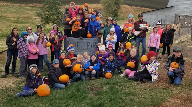 lower photo are the third grade students of Julie Schumacher and Vikki