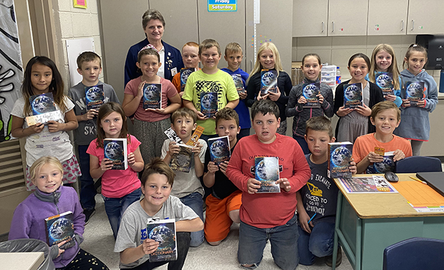 Nancy Asker came to PES to deliver the Third Graders dictionaries on
