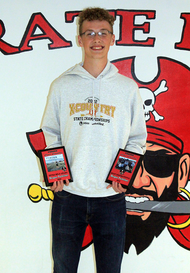 Cross Country Awards Banquet held ![]() The Prairie Cross Country team gives out two year end awards, Most Inspirational, which is voted on by all of the athletes, and The Extra Mile Award, chosen by the coaches. Morgan Poxleitner was awarded both of them. ![]() The Cross Country team did their chant they use to get themselves fired up for competition one last time at the awards banquet last Wednesday evening. Morgan Poxleitner, the only senior, came up with the chant early in the season. |