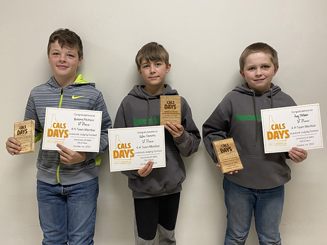 Division – 1st Place Team: Greencreek Active Workers (Anthony Forsmann, Ray Terhaar, and Gabe Severns) 1st Place Individual: Anthony Forsmann, Greencreek Active Workers; 2nd Place Individual: Kayden Duclos, Idaho County 4-H; 3rd Place Individual: Ray Terhaar, Greencreek Active Workers. Photo provided by Susie Heckman.