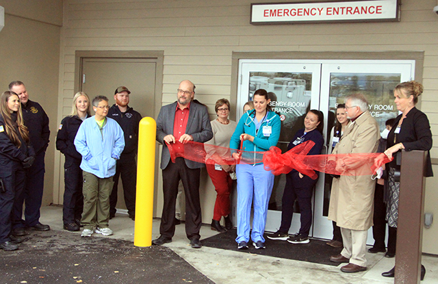 D.O., cuts the ribbon to officially open the new emergency room at St.