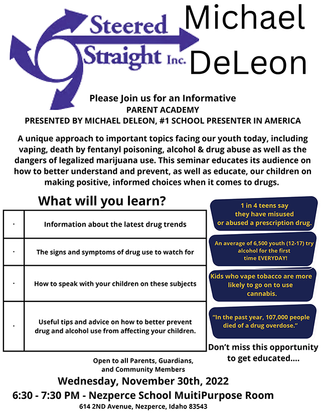 Nezperce School is hosting a parent academy next Wednesday, Nov. 30. Click on the photo for a larger view.