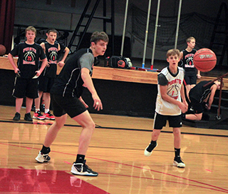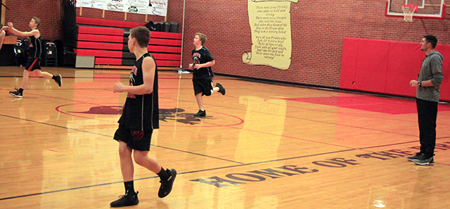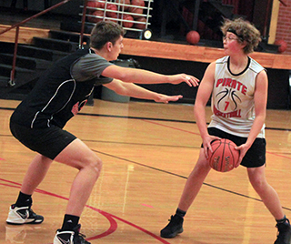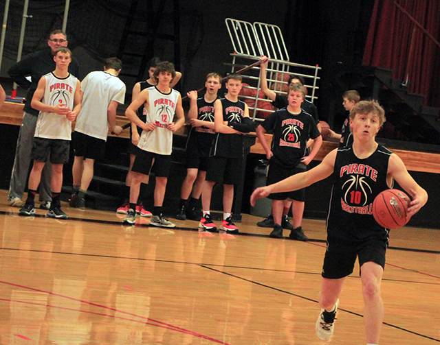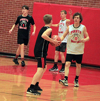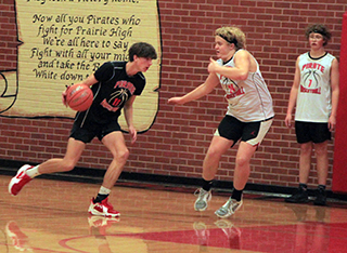 There are 24 players turned out for the Prairie High School boys basketball team this season. They will work with two new coaches. The new head coach is Tim Scheffler who has previously coached as an assistant girls coach and as a junior high boys coach for Prairie. Pat Holthaus, a fixture on the sidelines for the Pirates, also returns as an assistant coach. The new assistant coach is former boys head coach Teel Bruner who returns to the program after resigning after his son Jake’s senior season in 2015-16. Returning starters for the Pirates are senior Shane Hanson and junior Lee Forsmann. Also returning from last year’s varsity squad are senior Morgan Poxleitner, juniors Noah Behler and Trenton Lorentz and sophomore Matt Wemhoff. Other full-time varsity players are junior Bennie Elven and freshman Riley Shears. Serving as swing players are senior Ryan Wemhoff, sophomores Briggs Rambo and Logan Weber and freshmen Levi Gehring and Phil Schwartz. Full-time JV players are sophomores Kaden Duclos, Close Duclos, Collin Ray and Drake Cronan and freshmen Jackson Enneking, Benny Secrest, Nate Forsmann, Levi McElroy, Chris Schumacher, Max Rehder and Chase VonBargen. The Pirates are a young squad with only 2 returning players who started last season. They will have good size with a pair of 6’5” posts in Lee Forsmann and Hanson and the 6’9” Poxleitner. The Prairie varsity gets into action this Thursday, Dec. 1, against Kendrick and then will participate in the Idaho County Shootout on Friday against Grangeville. Both games are at Cottonwood. The JV gets an early start as they travel to Grangeville on Wednesday, Nov. 30. ![]() Phil Schwartz as just made a pass as Lee Forsmann watches the ball. ![]() Levi McElroy has the ball. From left are Ben Secrest, Levi Gehring and Kaden Duclos. ![]() Riley Shears handles the ball as Noah Behler guards him. Logan Weber is standing against the wall under the basket awaiting his turn on the floor. ![]() Lee Forsmann guards Logan Weber who has the ball on offense. ![]() At right is new head coach Tim Scheffler as he watches the players move the ball down the floor. From left are Levi McElroy, Chris Schumacher and Collin Ray. ![]() Trenton Lorentz goes up for a lay-up as Matt Wemhoff in black and Ben Elven and Noah Behler in white look on. ![]() Matt Wemhoff has the ball as a group of players and new assistant coach Teel Bruner look on from the sidelines. *indicates league game NOVEMBER