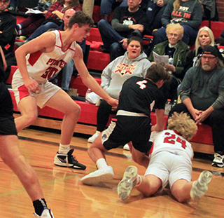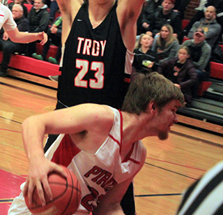 The Prairie Pirates lost a pair of home league games last week as they fell to Lapwai 38-82 on Thursday, Dec. 8, and to Troy 20-36 on Saturday, Dec. 10. Vs. Lapwai Prairie trailed 11-19 at the end of the first quarter against Lapwai and 24-49 by halftime. Lapwai extended the lead to 33-69 after 3 quarters. Lapwai’s Kase Wynott and Terrell Ellenwood-Jones combined for 62 points with Wynott scoring 41 of those. Lee Forsmann led the Pirates in scoring with 13 points. Shane Hanson scored 8, Trenton Lorentz scored 7, Matthew Wemhoff scored 5, Noah Behler scored 3 and Riley Shears scored 2. Prairie won the JV game 46-41 and also won the C game, no score available. Prairie 11 13 9 5 -38 Lapwai 19 30 20 13 -82 Prairie-Wemhoff 2, 0-0, 5; Shears 1, 0-0, 2; Lorentz 3, 1-2, 7; Hanson 4, 0-0, 8; Behler 1, 1-2, 3; Forsmann 4, 4-7, 13. 3-pointers-Wemhoff, Forsmann. Lapwai-Ellenwood-Jones 9, 3-3, 21; Payne 2, 0-0, 4; Sherman 1, 1-3, 3; Yearout 2, 0-0, 4; Miles 0, 2-2, 2; Bohen 3, 1-2, 7; Wynott 17, 5-6, 41. 3-pointers-Wynott 2. Vs. Troy The Pirates struggled to get any offense going against Troy as they weren’t able to score more than 6 points in any quarter.![]() The Pirates took the first lead of the game when Forsmann was fouled on a putback and converted a 3-point play for a 3-0 lead. Troy then scored the next 7 points to take the lead for good. Noah Behler broke the dry spell with a one-hander in the lane to cut the deficit to 5-7 but Troy closed out the first quarter with a 3-pointer for a 5-10 lead. Forsmann scored a pair of baskets in the second quarter as Prairie stayed within 3 at 9-12. A Troy 3-pointer was answered by a free throw by Hanson but Troy added a free throw for a 10-16 halftime lead. Forsmann had 7 of Prairie’s 10 first half points but was taken out of the offense in the second half as Troy sagged their defense to him anytime he touched the ball. He was held scoreless until hitting 3 of 4 free throws in the final 3 minutes. Troy scored first in the second half then Wemhoff scored for the Pirates. Prairie didn’t score against until over 5 minutes later when Behler scored from the baseline. In between Troy scored 8 straight points. The Trojans led 14-28 after 3 quarters. Troy scored the first 4 points of the fourth quarter before Behler scored a free throw. After another Troy basket Forsmann scored a free throw. Forsmann answered another Troy basket with 2 free throws then Shears closed out the game’s scoring with a basket with 28 seconds left. Forsmann led the Pirates in scoring with 10 points. Behler scored 5. Wemhoff and Shears scored 2 each and Hanson scored 1. Prairie had a 39-366 edge on the boards led by Forsmann who had 14 rebounds. Hanson had 3 steals while Wemhoff had 2. Bennie Elven and Forsmann each had 1 assist. Prairie was 7 for 42 from the field, 17%, and 6 for 15 at the line, 40%. Troy was 12 for 42 from the field, 28%, and 4 for 11 at the line, 36%. Prairie is now 1-3 on the season and 0-2 in league play. Prairie won the JV game 47-28. Troy scored the first 2 points then Prairie scored 10 straight to take the lead for good. Phil Schwartz tied it with a basket then Logan Weber scored the go-ahead basket. Schwartz and Weber each added a basket and Levi Gehring closed out the 10-0 run with a basket. Troy scored a free throw to make it 10-3 at the end of the quarter. Troy scored to open the second quarter but Gehring answered with a basket. After 3 Troy free throws, Nate Forsmann scored a pair of baskets to make it 16-8. Troy got back within 4 at 18-14 then the Pirates put together a 10-2 run to take a 28-16 lead. Weber started the run with a basket and Schwartz followed. After Weber scored again, Forsmann made a free throw to make it 25-14. After a Troy basket, Kaden Duclos converted a 3-point play to make it 28-16. Troy hit a 3-pointer late to make it 28-19 at the half. Troy scored the first 4 points of the second half to get within 5 but Prairie then scored 13 straight points. They closed the third quarter with a 9-0 run to make it 37-23, then scored the first 4 of the fourth quarter for a 41-23 lead. Briggs Rambo scored 7 of those 13 points on 3 baskets and a free throw. Schwartz, Forsmann and Weber each had a basket in that run. Troy finally broke it with 2 free throws but Prairie then scored 6 more points to make it a 19-2 run overall. Forsmann and Jackson Enneking each scored a basket and Levi McElroy made 2 free throws. Troy then scored the final 3 points of the game. Forsmann scored 11 to lead the JV team with Weber adding 10 points. Schwartz scored 8, Rambo 7, Gehring 3, Duclose 3 and Enneking and McElroy 2 each. Prairie had a 38-31 rebounding edge led by Forsmann whoe had 10 rebounds. Gehring added 8. Rambo had 5 steals while Gehring, Schwartz and Forsmann had 4 each. Gehring and Schwartz each had 3 assists. The JV’s were 21 for 54 from the field, 39%, and 5 for 9 at the line, 56%. Troy was 10 for 41 from the field, 24%, and 7 for 11 at the line, 64%. Prairie lost the C game 25-32. Prairie 5 5 4 6 -20 Troy 10 6 12 8 -36 Prairie-Wemhoff 1-2, 0-0, 2; Shears 1-5, 0-0, 2; Lorentz 0-3, 0-1, 0; Hanson 0-8, 1-4, 1; Forsmann 3-11, 4-6, 10; Behler 2-7, 1-2, 4; Elven 0-3, 0-2, 0; Schwartz 0-3, 0-0, 0. 3-pointers-none. Troy-Stoner 0-5, 3-6, 3; Blazzard 1-4, 1-3, 3; Johnson 4-9, 0-1, 8; Durrett 0-1, 0-0, 0; Bendel 5-15, 0-2, 12; Holden 4-8, 0-0, 10; Wilson 0-0, 0-0, 0; Doumit 0-0, 0-0, 0; Nelson 0-0, 0-0, 0; Heath 0-0, 0-0, 0; Chamberlin 0-0, 0-0, 0. 3-pointers-Bendel 2, Holden 2. ![]() Matt Wemhoff comes up with a steal against Troy. ![]() Noah Behler dives after a loose ball. Lee Forsmann is shown at left. ![]() Bennie Elven with the ball at the top of the key against Troy. ![]() Shane Hanson looks to get a shot off in the low block against Troy. *indicates league game NOVEMBER