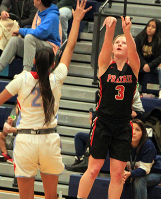 Lapwai started the game like they were going to blow Prairie out of the gym as they jumped out to a 0-7 lead. Prairie finally scored when Kristin Wemhoff put back her own missed shot at the 5:05 mark of the first quarter. Prairie managed to get back within 2 at 9-11 in the first quarter after a putback by Tara Schlader but Lapwai scored to make it 9-13 at the end of the quarter. ![]() Prairie opened the second quarter with a 6-0 run to take their first lead of the game. Schlader scored on a feed from Lexi Schumacher. A steal by Kylie Schumacher led to a lay-up by Wemhoff to tie the game. Wemhoff then stole the ball and drove for a lay-up to put Prairie ahead at the 7:05 mark of the second quarter. Lapwai tied it but a basket each by Wemhoff and Schlader made it 19-15 with 6:22 left in the half. Lapwai scored 4 straight to tie it but an 8-0 run by Prairie put the Pirates up 27-19. Schlader scored inside then Lexi Schumacher and Wemhoff each scored a 3-pointer to put Prairie up 8 with 1:17 left in the half. Lapwai scored the final 4 points of the half to close the margin to 27-23 at the break. The Wildcats scored the first 4 points of the second half to tie the game at 27. Lexi Schumacher made 2 free throws to put Prairie back on top but Lapwai answered with 5 straight to take a 29-32 lead. Prairie came right back with their own run as they outscored Lapwai 9-2 over the next 3 minutes to take a 38-34 lead. Wemhoff started it with 2 free throws. Schlader scored on an inbounds play and Wemhoff drove in for a lay-up. After a Lapwai basket, Wemhoff scored a free throw and Schlader scored inside. Lapwai then hit a 3 at the buzzer to cut Prairie’s lead to 38-37 after 3 quarters. Lapwai then scored to take the lead early in the fourth quarter but Schlader responded with a basket to put Prairie back on top 40-39. Lapwai took back the lead but Kylie Schumacher tied it with a free throw. Lapwai again took the lead but a baseline shot by Lexi Schumacher and a lay-up by Schlader put Prairie back on top 45-43 with 4:26 to play. Lapwai scored twice to retake the lead at 45-47 with 3:03 left. Kylie Schumacher tied it with a lay-up at the 2:46 mark. Wemhoff then put Prairie up 49-47 with 1:20 to play when she ran under a full court inbounds pass from Schlader and converted a lay-up. Prairie really should have led by several more points but missed a string of 7 straight free throws between Kylie Schumacher’s make with 5:32 left and Wemhoff’s free throw with 35 seconds left that gave Prairie a 50-47 lead. Lapwai scored with 6.7 seconds left and Prairie again tried the full-court inbounds pass. Wemhoff was unable to handle the ball though and it went out of bounds off her knee with just over 5 seconds left. At that point Prairie still had 3 fouls to give before Lapwai would be shooting 1 and 1’s. Coach Lori Mader wanted her players to foul the Lapwai player who got the inbounds pass to force them to have to run another inbounds play. However the Lapwai player who got the ball was able to quickly feed it downcourt to freshman Skylin Parrish, who swished a 3-point shot as the buzzer sounded. Wemhoff wound up leading all scorers with 23 points while Schlader added 16. Lexi Schumacher scored 7 and Kylie Schumacher scored 4. Prairie outrebounded Lapwai 54-47 with Wemhoff leading the team with 15 rebounds while Schlader added 14 and Kylie Schumacher had 8. Wemhoff had 6 steals while Schlader had 5 steals and 4 assists and Lexi Schumacher had 4 steals and 3 assists. Prairie was 20 for 63 from the field, 32%, and 8 for 19 at the line, 42%. Lapwai was 22 for 71 from the field, 31%, and 4 for 9 at the line, 44%. Prairie is now 4-2 on the season and 3-1 in league play. Prairie won the JV game 44-29. Surprisingly, Prairie never trailed in the game. Sage Elven scored the first points of the game. After Lapwai tied it, a 3-point play by Kailey Lockett put Prairie on top for good. Elven added a basket to make it 7-2. Prairie led just 10-8 after 1 quarter as Aubree Rehder added a basket and Lockett a free throw for a 10-4 lead but Lapwai scored the final 4 points of the quarter. Elven stole the ball and scored to start the second quarter. After a Lapwai basket, Lockett sank a 3-pointer and Rehder scored a putback for a 17-10 lead. Lapwai got back within 2 at 17-15 but a free throw each by Ellie Nuxoll and Sydney Shears gave Prairie a 19-15 halftime lead. Prairie still led just 23-20 with 2:33 left in the third quarter when they put together an 8-0 run to end the period and take a 31-20 lead. Elven scored the first 6 points of that run on 2 baskets and 2 free throws and Rehder closed out the quarter with a buzzer-beater following a steal by Nuxoll. Lapwai opened the fourth quarter with a basket to break the run but Lockett then sank a 3-pointer to make it 34-22. Lapwai scored 3 straight to get back within 9 but Prairie closed the game with a 10-4 run. Lockett scored 7 of those 10 points with Nuxoll adding a basket and Shears a free throw. Lockett wound up with 19 points to lead all scorers. Elven added 12 points while Rehder scored 6, Nuxoll 5 and Shears 2. Prairie had a 44-32 advantage on the boards led by Elven and Nuxoll who had 11 rebounds each and Lockett who added 10. Elven had 7 steals while Nuxoll had 5 steals and 5 assists. Lockett also had 5 steals while Shears had 3 assists. The JV’s were 16 for 45 from the field, 36%, and 9 for 17 at the line, 53%. Lapwai was 13 for 54 from the field, 24%, and 2 for 6 at the line, 33%. Prairie 9 18 11 12 -50 Lapwai 13 10 14 15 -52 Prairie-L. Schumacher 2-12, 2-2, 7; Wemhoff 9-23, 4-8, 23; Schlader 8-16, 0-5, 16; Hanson 0-2, 0-0, 0; K.Schumacher 1-6, 2-4, 4; Geis 0-3, 0-0, 0; Enneking 0-0, 0-0, 0; 3-pointers-Wemhoff, L. Schumacher. Lapwai-Ja. McCormack-Marks 4-13, 1-2, 10; Jo. McCormack-Marks 3-13, 0-1, 6; Gould 4-18, 0-0, 9; Leighton 2-3, 0-0, 4; Mitchell 4-13, 0-2, 8; George 0-0, 1-2, 1; Bisbee 2-5, 0-0, 5; Parrish 2-4, 0-0, 5; Yearout 1-2, 2-2, 4. 3-pointers-Ja. McCor