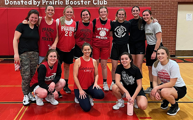 game. Shown kneeling from left are Angela Wemhoff, Renee Arnzen Rehder,
