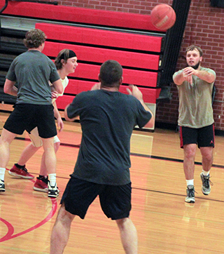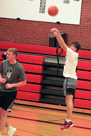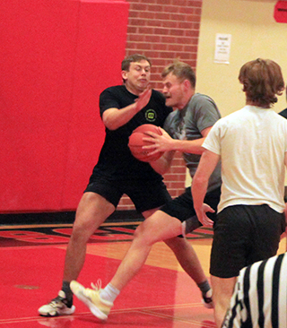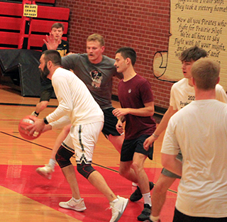 There were 12 women and 19 men who showed up to play in the Prairie High School Alumni basketball games Monday, Dec. 26 at the PHS gym. The Red women’s team featured Meshel Rad, Laney Forsmann, Angela Wemhoff, Sydney Bruner, Leah Higgins and Renee Arnzen Rehder. They played two 20 minute running clock halves. The red team led 18-15 at the half. They won the game 38-34 over the black team which featured Kyndahl Ulmer Bruner, Krystin Uhlenkott Schlader, Rachel Wemhoff Hernandez, Ellea Uhlenkott, Delanie Lockett and Ali Rehder. On the men’s side the mostly whiteshirted Jon Rehder, Lane Schumacher, Adam Forsmann, Ryan Glimp, Alex McElroy, Tyler Wemhoff, Rhett Schlader, Tanner Ross and Cole Schlader. They pulled out a 90-80 win by outscoring the dark shirted team 33-19 in the final quarter of four 15 minute running clock quarters. They trailed after each of the first 3 quarters 19-15, 37-32 and 61-57. The mostly dark shirted team consisted of Lucas Arnzen, Jake Bruner, Travis Alfrey, Kenneth Enneking, Zach Rambo, Brody Hasselstrom, Pat McWilliams, Brandon Higgins, Luke Wemhoff and Wyatt Ross. Proceeds for the event go to the Prairie athletic programs. ![]() Brandon Higgins puts up a shot. Also shown from left are Luke Wemhoff, Rhett Schlader and Tanner Ross. ![]() Brody Hasselstrom passes to Pat McWilliams. Also shown are Brandon Higgins and Cole Schlader. ![]() Jake Bruner drives into the lane against Ryan Glimp. Also shown is Cole Schlader. ![]() Jon Rehder starts a transition to the other end. Also shown are Cole Schlader, Zach Rambo, Tyler Wemhoff, Travis Alfrey and Jake Bruner. ![]() Kenneth Enneking looks to shoot a 3 against Adam Forsmann. ![]() Lucas Arnzen still has the great looking form on his jump shot. ![]() Zach Rambo puts up a 3-pointer. Also shown is Jake Bruner. ![]() Jon Rehder has the ball near the free throw line. Also shown from left are Alex McElroy, Jake Bruner, Wyatt Ross, Zach Rambo and Rhett Schlader. Photos from the women's game are on the girls sports page. *indicates league game NOVEMBER