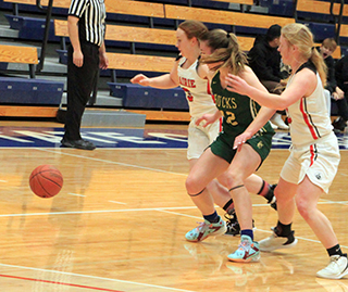 their only lead of the game.![]() Kristin Wemhoff drove to the hoop to cut the lead to 6-8. Kylie Schumacher then tied it on a putback and Lexi Schumacher put Prairie on top for good with a 3-pointer that made it 11-8 at the end of the first quarter. Prairie then scored the first 13 points of the second quarter to make it a 20-0 scoring run. Lexi Schumacher opened the second quarter with a basket then Tara Schlader scored a free throw, a basket and 2 more free throws. Wemhoff then scored 3 straight baskets to make it 24-8. Pendleton finally broke through with a basket at the 2:07 mark, just 5 seconds shy of going 8 full minutes without scoring. Prairie’s full court press and halfcourt trap combined to force 13 second quarter turnovers from the Buckaroos. Prairie took a 29-12 lead into the halftime break. The third quarter saw Prairie outscore Pendleton 10-4. Prairie could have scored a lot more but struggled to make shots as they connected on just 4 of 16 attempts from the field. Pendleton scored first in the fourth quarter then Prairie scored 10 straight. Schlader scored a putback then scored 2 free throws. Sage Elven scored a pair of free throw and then Wemhoff and Schlader each scored a basket to make it 49-18 with 3:44 left. That also turned on the running clock. Pendleton scored the only 2 points in the final 3 minutes to make the final scored 49-20. Wemhoff led the Pirates with 15 points and added 11 rebounds, 7 steals and 2 assists. Schlader also had a double-double with 11 points and 10 rebounds and added 6 steals and 4 assists. Lexi Schumacher scored 9 points. Kylie Schumacher scored 4. Alli Geis and Hanson each scored 3. Riley Enneking and Elven each scored 2. Prairie was 19 for 66 from the field, 29%, and 10 for 21 at the line, 48%. Pendleton was 8 for 32 from the field, 25%, and 3 for 10 at the line, 30%. Prairie committed 21 turnovers but forced 41 including 26 by way of steals. Prairie 11 18 10 10 -49 Pendleton 8 4 4 4 -20 Prairie-L. Schumacher 4-16, 0-1, 9; Wemhoff 7-20, 1-5, 15; Schlader 3-13, 5-7, 11; Geis 1-1, 1-2, 3; Hanson 1-4, 1-4, 3; K. Schumacher 2-7, 0-0, 4; Enneking 1-2, 0-0, 2; Elven 0-1, 2-2, 2; Shears 0-1, 0-0, 0; Lockett 0-0, 0-0, 0. 3-pointers-L. Schumacher. Pendleton-Boatman 3-5, 0-3, 6; Schmidt 2-11, 0-2, 5; Krigbaum 1-2, 0-0, 2; Edmonds 0-2, 0-0, 0; Jenness 1-2, 0-0, 2; Spratling 1-2, 0-1, 2; Murphy 0-1, 0-0, 0; Elrod 0-2, 1-2, 1; Schumacher 0-5, 2-2, 2; Roy 0-0, 0-0, 0. 3-pointers-Schmidt. Vs. Clarkston In the game against
