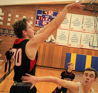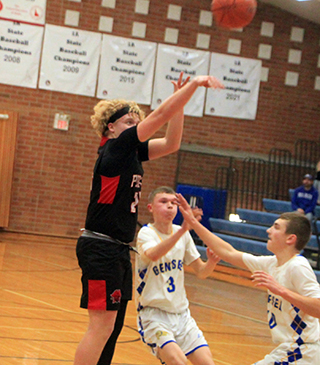 The Prairie Pirates opened the new year by breaking their 6 game losing streak as they traveled to Genesee Saturday, Jan. 7, and won 57-28. ![]() Maybe the Pirates need to schedule more games against teams nicknamed the Bulldogs as they are 2-0 against Bulldogs (Grangeville and Genesee) and 0-7 against all others. Lee Forsmann scored the game’s first points on an inbounds feed from Matt Wemhoff but Genesee tied it with 2 free throws. Prairie then went on a 9-0 run to retake the lead. Forsmann scored inside then Noah Behler drove to the hoop for a lay-up. Riley Shears scored a putback then Shane Hanson made 1 free throw and Forsmann made 2 to make it 11-2. Genesee scored a pair of baskets to close the first quarter and make it 11-6. Bennie Elven scored to open the second quarter then Genesee scored 5 straight points to cut the Pirates lead to 13-11. Shears made a free throw then Genesee made 2 free throws to cut the Pirates lead to just 1 at 14-13 with 2:09 left in the half. Shears then hit his first 3-pointer of the season and Behler scored a putback to give Prairie a 19-13 lead at the half. Genesee had the ball out of bounds to open the second half but Behler stole the inbounds pass and drove to the hoop for a lay-up. Forsmann then hit a 3-pointer to put Prairie up 24-13. Genesee scored 5 straight to get back within 6 but the Pirates responded with an 11-0 run. A steal by Wemhoff led to a basket by Trenton Lorentz. Forsmann then converted a 3-point play. A steal by Elven led to a lay-up by Shears. Shears then stole the ball and fed it to Forsmann for a lay-up. Elven closed out the 11-0 run with a putback for a 35-18 Prairie led. Genesee broke a scoring drought of over 5 minutes with a basket but Prairie closed out the third quarter with Behler making 2 free throws for a 37-20 lead. Prairie scored the first 6 points of the fourth quarter to increase their lead to 23. Elven and Phil Schwartz each scored a basket and Behler made 2 more free throws. After a Genesee free throw, Prairie made it a 13-1 scoring run with a basket by Elven and a 3-pointer by Behler. That made it 48-21 with 6:10 to play. Two free throws by Genesee were answered by a free throw by Forsmann. Genesee then hit a 3 to make it 49-26. Hanson scored and the Forsmann putback his own missed shot to make it 53-26. Genesee scored their final points with 3:45 left. Within the next minute Prairie had both Lorentz and Hanson foul out. Both had missed a lot of playing time with foul trouble. With 2:05 left Schwartz sank a 3-pointer. With 25 seconds left Genesee lost a player to fouls. He wound up getting a sixth foul as he went straight to the bench before he could be subbed out of the game, which is a technical foul. Coach Tim Scheffler had senior Ryan Wemhoff shoot the technical free throws and the loudest cheer of the night from the Prairie crowd came when Wemhoff made the first free throw for his first ever varsity point. Forsmann wound up leading the team in both points and rebounds with 17 and 15 respectively. Behler also scored in double figures with 13 points. Elven and Shears scored 8 points each with Schwartz scoring 5, Hanson 3, Lorentz 2 and Ryan Wemhoff 1. Prairie had a 41-34 advantage on the boards. Shears had 6 steals and Matt Wemhoff had 4 assists. Prairie was 21 for 57 from the field, 37%, and 11 for 16 at the line, 69%. Genesee was 9 for 43 from the field, 21%, and 8 for 17 at the line, 47%. Prairie is now 2-7 on the season and 1-3 in league play. Genesee was short on players so the JV game was just 2 quarters with Prairie pulling out a 16-14 win. Genesee took and 2-5 lead in the game with Kaden Duclos scoring Prairie’s 2 points. Phil Schwartz then tied it at 5 and Nate Forsmann followed with a free throw and Briggs Rambo added a basket for an 8-5 lead. Genesee came back to tie it with a basket and then a free throw. Prairie took the lead for good on a lay-up by Forsmann with 2:30 left in the quarter. Logan Weber followed with a basket on an inbounds play to make it 12-8. Genesee scored a basket and Weber closed out the first quarter with a free throw to make it 13-10. Both teams were offensively challenged in the second quarter. Genesee scored to cut the lead to 1 with 7 minutes to play. Neither team scored until Schwartz made a 3-pointer with 4:30 left to make it 16-12. That was Prairie’s final points of the game. Genesee scored a basket with 2:31 left to pull within 2. Both teams had their opportunities over the final 2:30 but nobody scored. Genesee had a chance to tie it late when Prairie fouled with 0.8 seconds left for a 1 and 1. The shooter made the first shot but it was waved off as he stepped on the line and since it was a 1 and 1, the game was over. Schwartz led the JV’s in scoring with 6 points while Forsmann and Weber each scored 3. Duclos and Rambo each scored 2. Genesee had a 14-17 edge on the boards. Forsmann led Prairie with 4 rebounds. Rambo had 4 steals while Forsmann had 3. Forsmann and Schwartz each had 3 assists. Prairie was 6 for 26 from the field, 23%, and 2 for 5 at the line, 40%. Genesee was 6 for 15 from the field, 40%, and 2 for 7 at the line, 28%. The C team played Orofino at Cottonwood on Friday, January 6, and lost 32-37. Prairie 11 8 18 20 -57 Genesee 6 7 7 8 -28 Prairie-M. Wemhoff 0-1, 0-0, 0; Lorentz 1-2, 0-0, 2; Hanson 1-6, 1-2, 3; Behler 4-12, 4-5, 13; Forsmann 6-16, 4-5, 17; Shears 3-8, 1-2, 8; Elven 4-6, 0-0, 8; Schwartz 2-4, 0-0, 5; Gehring 0-0, 0-0, 0; Rambo 0-0, 0-0, 0; Weber 0-0, 0-0, 0; R. Wemhoff 0-2, 1-2, 1. 3-pointers-Behler, Forsmann, Shears, Schwartz. Genesee-Schwartz 2-7, 0-0, 5; Wareham 2-16, 5-8, 9; Burt 3-4, 2-6, 9; Zenner 1-7, 1-3, 3; Stewart 0-5, 0-0, 0; Johnson 0-0, 0-0, 0; Vestal 1-4, 0-0, 2; Clark 0-0, 0-0, 0. 3-pointers-Schwartz, Burt. ![]() Lee Forsmann puts up a 3-point shot at Genesee. Also shown is Phil Schwartz. ![]() Noah Behler puts up a midrange jump shot at Genesee. ![]() Phil Schwartz shoots for 3 at Genesee. ![]() Riley Shears scores 2 p