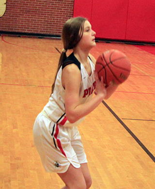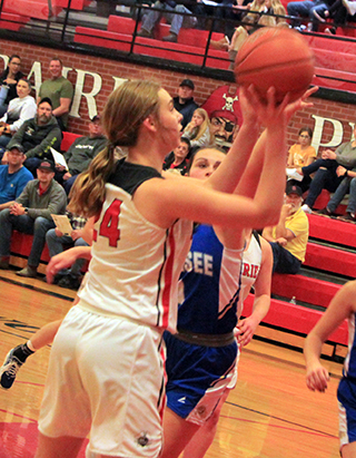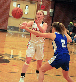 Friday, Jan. 6, they hosted Genesee in a league game and won 74-36. They were scheduled to play Grangeville on Monday, Jan. 9, but that game was cancelled by Grangeville. Prior to the Genesee game announcer Gus Hoene honored Jerry Wren, who passed away recently and has 3 granddaughters on the team. The players also wore special warm shirts honoring Wren. At Kendrick Prairie gained a season split with Kendrick by pulling out a win. Prairie jumped out to a 5-0 lead in the game as Kristin Wemhoff opened the scoring with a basket a couple minutes in. Lexi Schumacher added a free throw and Wemhoff scored again to make it 5-0. Kendrick finally got on the board with a free throw and then added a basket to pull within 2. Riley Enneking scored a lay-up to make it 7-3 but Kendrick closed out the first quarter scoring with a 3-point to make it 7-6 after 1 period. Lexi Schumacher opened the second quarter scoring with a basket but Kendrick answered with a basket and then made a 3-pointer to take their first lead of the game. Tara Schlader tied it on a feed from Wemhoff but just after that Wemhoff picked up her third foul and went to the bench for the rest of the half. Kendrick took advantage of Wemhoff’s absence to force numerous turnovers from the Pirates and went on a 2-15 run. They scored 4 straight then Lexi Schumacher scored a lay-up. Kendrick then scored 11 straight for a 13-26 lead before Sage Elven broke the run with a lay-up on an inbound feed from Enneking just before the half. That gave Kendrick a 15-26 halftime lead. Kendrick led by as many as 14 early in the second half after a 3-pointer made it 17-31. Prairie then went on a 9-0 run to get back into the game. Lexi Schumacher started the run with a 3-pointer. Wemhoff drove in for a score and then Kylie Schumacher hit back to back baskets to make it 26-31. A basket each by Wemhoff and Lexi Schumacher cut the margin to 4 at 30-34. Kendrick quickly pushed it back to 8 with a pair of baskets. Schlader scored but Kendrick answered. Prairie was able to finish the quarter with a basket as a steal by Wemhoff led to a lay-up by Lexi Schumacher at the buzzer. That made it 34-40 after 3 quarters. Two baskets by Wemhoff to open the fourth quarter cut the lead down to 2. A perimeter shot by Kendrick was answered by a basket by Schlader and a free throw by Wemhoff that cut the lead to 1 at 41-42. After a Kendrick basket, Lexi Schumacher hit a 3 that tied the game at 44 with 5:12 left. Kendrick answered with a 3 but Lexi Schumacher hit another 3 to again tie it at 47-47. Wemhoff then scored on a drive to the hoop to give Prairie their first lead since early in the second quarter. Kendrick answered with a banked in 3-pointer to go back on top by 1. With about a minute left Wemhoff went in for a lay-up but missed. The ball came off to Kylie Schumacher who managed to push the ball over to Lexi Schumacher for a basket that made it 51-50. The final minute of action saw Schlader blocking a couple of Kendrick shots and the Pirates unable to extend their lead due to missed shots and turnovers. Lexi Schumacher wound up with 20 points to lead the scoring while Wemhoff added 17 points and 13 rebounds. Schlader scored 6 points with 12 rebounds. Kylie Schumacher had 4 points and 10 rebounds. Enneking and Elven each scored 2 points. Prairie had a 53-34 advantage on the boards. Lexi Schumacher had 5 steals while Schlader had 4. Wemhoff had 3 steals and 4 assists. Prairie was 23 for 64 from the field, 36%, and 2 for 5 at the line, 40%. Kendrick was 19 for 62 from the field, 31%, and 5 for 12 at the line, 42%. In the JV game Prairie lost 18-30. Prairie 7 8 19 17 -51 Kendrick 6 20 14 10 -50 Prairie-L. Schumacher 8-18, 1-2, 20; Wemhoff 7-17, 1-3, 17; Schlader 3-10, 0-0, 6; Hanson 0-6, 0-0, 0; K. Schumacher 2-6, 0-0, 4; Enneking 1-3, 0-0, 2; Elven 1-3, 0-0, 2; Geis 0-0, 0-0, 0. 3-pointers-L. Schumacher 3. Kendrick-Rose Stewart 4, 0-0, 8; Heimgartner 0, 0-0, 0; Anderson 5, 1-2, 11; Silflow 0, 3-5, 3; Ruby Stewart 6, 1-4, 17; Taylor 4, 0-0, 11. 3-pointers-Ruby Stewart 4, Taylor 3. Vs. Genesee The game against Genesee was close through most of the first quarter then Prairie broke it open in the second with a 16-0 run.![]() Kristin Wemhoff started the scoring with a 3-pointer with Genesee answering with a basket. Kylie Schumacher sank a 10-footer then Hailey Hanson made a 3-pointer and Lexi Schumacher scored after a steal for a 10-2 lead. Genesee scored 4 straight points to pull within 4 but a putback each by Kylie Schumacher and Enneking made it 14-6. Genesee answered with a 3-pointer to make it 14-9 at the end of the first quarter. Alli Geis scored to open the second quarter and Genesee answered with a free throw. Wemhoff then scored to kick off Prairie’s 16-0 run that put them in control of the game. Enneking followed with a basket. Wemhoff made a 3-pointer and then a basket. Lexi Schumacher made a 3 and Wemhoff and Kylie Schumacher each added a basket to give Prairie a 32-10 lead. Genesee finally broke through with a pair of 3 pointers but Lexi Schumacher answered with a 3 of her own. Another Genesee 3 was answered with a 3 by Wemhoff to make it 38-19. Genesee scored in the final seconds to make it 38-21 at the half. Prairie opened the second half with a 9-0 run. Kylie Schumacher scored on a putback and then Lexi Schumacher made a 3. Wemhoff scored a free throw then Lexi Schumacher sank another 3-pointer to make it 47-21. Genesee had a 2-5 run with Schlader scoring Prairie’s 2 points, then Prairie score 9 straight points. Schlader scored a putback and then on a hook shot. Lexi Schumacher then scored a lay-up following a steal by Geis, then hit her fifth 3-pointer of the game to make it 58-26. After 4 points by Genesee, Wemhoff scored a lay-up and Enneking scored to close out the quarter for a 62-30 lead. That made it a running clock for the entire fourth quarter. Enneking opened the fourth quarter with a 3-pointer and followed with a 2-point basket for a 67-30 lead.