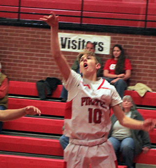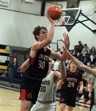 The Prairie Pirates won 2 of 3 games this past week. On Tuesday, Jan. 10, they beat C.V. 59-32 at Cottonwood. On Saturday, Jan. 12, they made it a 3-game winning streak with a 57-53 win in overtime over Logos at Moscow. Finally on Monday, Jan. 16, they traveled to Potlatch to make up a game postponed by illness and lost 36-55. Vs. C.V. Lee Forsmann had a huge game against the Rams at Cottonwood as he wound up outscoring the Rams team 33-32.![]() He got Prairie stated with a basket and 2 free throws for a 4-0 lead. C.V. came back to tie it at 4-4 but Forsmann scored 2 more free throws to put Prairie back on top and added a third free throw. Bennie Elven then got into the scoring column on a spin move in the lane to make it 9-4. After a C.V. baskets, Riley Shears scored on a putback and added a later free throw to make it 12-6. C.V. scored to make it 12-8 at the end of the first quarter. C.V. cut the deficit to 2 in the second quarter then Forsmann added 2 more free throws and Phil Schwartz scored a basket to make it 16-10. After a Rams basket, Shears and Forsmann each scored to put Prairie up 8 at 20-12. C.V. cut the lead to 4 before Prairie closed out the half with 6 straight points. Forsmann and Elven each scored on putbacks then Forsmann stole the ball and scored to make it 26-16 at the half. At that point Forsmann had scored 15 and C.V. had 16. C.V. opened the second half with a basket then Forsmann scored twice to put Prairie up by 12 at 30-18. C.V. cut the lead to 8 with a pair of baskets buy Forsmann then hit a 3 and followed a minute later with 2 free throws to give Prairie a 13 point lead at 35-22. C.V. put a mini-run together scoring 5 straight points but Prairie answered with 5 straight of their own. Forsmann sank 2 more free throws and Shears hit a 3-pointer to make it 40-27. C.V. scored to end the quarter with Prairie ahead 40-29. C.V. scored to open the fourth quarter and get their deficit down to 10 but Prairie then scored 9 straight points. A basket each by Shears and Trenton Lorentz were followed by a putback by Forsmann, a lay-up by Lorentz and a free throw by Shane Hanson as Prairie took a 49-30 lead. C.V. then scored what turned out to be their final points of the game, a pair of free throws with 3:05 left to play. Prairie then finished the game with a 10-0 run. Forsmann hit a 3-pointer. Matt Wemhoff then stole ensuing inbounds pass and scored. Elven hit a turn-around jumper then Forsmann scored to put him ahead of C.V. 33-32. Shears scored the game’s final point at the free throw line. Forsmann was 10 for 17 from the field and 11 for 14 at the line with a pair of 3-pointers for his game high 33 points. He also led the team in rebounds with 12 and had 7 steals. Shears was also in double figures with 11 points and added 7 rebounds and 4 assists. Lorentz, Elven and Schwartz each scored 4 points while Wemhoff scored 2 and Hanson 1. Prairie had a 43-36 edge on the boards. Wemhoff almost hit double figures with 9 rebounds and had 5 assists. Prairie was 21 for 65 from the field, 32%, and 14 for 25 at the line, 42%. C.V. was 14 for 42 from the field, 33%, and 4 for 6 at the line, 67%. Prairie also won the JV game against the Lewiston C team 45-35. Prairie led just 2 times in the first quarter, 4-2 after a basket by Logan Weber and 10-8 after a steal and ensuing basket by Levi Gehring. Lewiston finished the first quarter with a 0-8 run to take a 10-16 lead. Lewiston led 12-21 in the second quarter when Prairie turned the game around. Prairie scored the next 16 straight points including the final 12 of the first half. Nate Forsmann got the run started with a lay-up. Weber followed with a lay-up. Kaden Duclos scored a putback. Briggs Rambo scored on a drive to the hoop. Benny Secrest scored a putback and Rambo finished the first half with a steal and drive to the hoop to make it 29-21 at the break. Gehring opened the second half with a basket and Forsmann followed with a lay-up off a feed from Phil Schwartz. Lewiston then scored their only point of the third quarter as Prairie forced 9 turnovers and allowed just 2 shot attempts in the quarter. Prairie then finished the quarter with 5 straight points. Weber scored a basket, Rambo a free throw and Schwartz a basket to give Prairie a 33-22 lead heading into the fourth quarter. Lewiston was able to get within 8 points a couple times in the fourth quarter but each time Prairie responded. Rambo had a 3-pointer in the fourth while Duclos, Max Rehder and Jackson Enneking each had a basket. Collin Ray made 2 free throws and Secrest added a free throw as Lewiston was only able to gain a point on the Pirates in the final period. Rambo wound up with 8 points to lead the JVs. Gehring, Schwartz, Forsmann and Weber each scored 6. Duclos scored 4, Secrest scored 3 and Enneking, Rehder and Ray each scored 2. Prairie had a 43-30 edge on the boards. Forsmann led the Pirates with 9 rebounds. Gehring and Rambo each had 3 steals and Gehring, Forsmann and Schwartz each had 2 assists. Prairie was 20 for 59 from the field, 34%, and 4 for 12 at the line 33%. Lewiston was 15 for 40 from the field, 38%, and 4 for 9 at the line, 44%. Prairie 12 14 14 19 -59 C.V. 8 8 13 3 -32 Prairie-M. Wemhoff 1-7, 0-0, 2; Lorentz 2-8, 0-0, 4; Hanson 0-5, 1-4, 1; Behler 0-8, 0-2, 0; Forsmann 10-17, 11-14, 33; Shears 4-9, 2-4, 11; Elven 2-6, 0-0, 4; Schwartz 2-4, 0-0, 4; R. Wemhoff 0-1, 0-1, 0. 3-pointers-Forsmann 2, Shears. C.V.-Louwien 0-5, 0-0, 0; Raff 2-3, 0-0, 4; Gardner 1-5, 1-2, 3; Schlieper 6-15, 0-0, 12; Curtis 4-8, 3-4, 11; Osborn 0-4, 0-0, 0; Moses 1-1, 0-0, 2; Kessler 0-1, 0-0, 0. 3-pointers-none. At Logos Prairie trailed for all but the final 5 seconds of the second half but wound up winning in overtime at Logos.Prairie had the lead just once in a low-scoring opening quarter when Lorentz hit a 3-pointer at the 4:36 mark that gave Prairie a 5-4 lead. Lorentz had also scored the first 2 points of the game for the Pirates. Logos took the lead back about 2 minutes