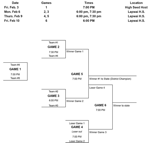 6-Boys vs Timberline at Highland JV/V, 5 p.m. 9-Boys at Grangeville, V only, 7:30 p.m. 10-Boys vs. Meadows Valley at Highland, V only, 6 p.m. 3-8-Girls District 16-18-Girls State at Nampa 17-22-Boys District March 2-4-Boys State at Caldwell
