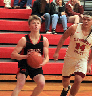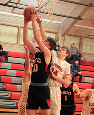 while this time he scored just 8, none in the first half.![]() C.V. made the defensive adjustment on Forsmann by sagging defenders into the lane anytime Forsmann tried to drive to the hoop and keeping a man on him anytime he tried to put up an outside shot. Prairie came out lethargic with C.V. taking a 3-0 lead at the 4 minute mark. Coach Tim Scheffler then subbed out his entire starting 5 and let the subs play the rest of the first quarter. C.V. upped the lead to 0-5 before Riley Shears scored at the 1:11 mark to put Prairie on the scoreboard. Levi Gehring tied it at 5-5 with a 3-pointer. C.V. then scored 2 free throws for a 5-7 lead at the end of the first quarter. The starters went back in to start the second quarter and C.V. scored 5 straight for a 5-12 lead. Trenton Lorentz scored a free throw and then a basket to cut the lead to 8-12 but C.V. ended the half with a 3-pointer. Prairie was 1 for 12 from the floor in the second quarter and 3 for 22 for the half. Forsmann scored his first points on a putback to start the second half but the Rams answered with a pair of baskets. Shane Hanson made a free throw but C.V. answered with a basket. Noah Behler scored to make it 13-21 but C.V. again answered with a basket. Forsmann sank a 3-pointer to close out the third quarter scoring and make it 16-23. C.V. outscored Prairie 1-7 to start the fourth quarter and take a 17-30 lead with 5:07 to play. Prairie then started putting some things together and scored 7 straight points to cut the deficit to 6 but by that time there was just 23 seconds left. Behler scored a free throw and a 3-pointer and Forsmann hit 3 of 6 free throws in that 7-0 run. C.V. closed out the game with a pair of free throws to make the final margin 8 points. Forsmann scored 8 to lead the Pirates in scoring. Behler scored 6. Gehring, Shears and Lorentz scored 3 each and Hanson scored 1. C.V. had a 32-37 rebounding edge. Hanson had 9 rebounds to lead the Pirates. Shears had 4 steals and 2 assists and Bennie Elven also had 2 assists. There was no JV game. Prairie 5 3 8 8 -24 C.V. 7 8 8 9 -32 Prairie-Wemhoff 0-3, 0-2, 0; Lorentz 1-11, 1-2, 3; Hanson 0-4, 1-2, 1; Behler 2-9, 1-2, 6; Forsmann 2-7, 3-6, 8; Gehring 1-2, 0-0, 3; Shears 1-5, 1-2, 3; Schwartz 0-1, 0-0, 0; Elven 0-4, 0-0, 0; Weber 0-0, 0-0, 0. 3-pointers-Behler, Forsmann, Gehring. C.V.-Louwien 1-4, 0-0, 2; Raff 4-5, 0-0, 8; Gardner 0-2, 2-2, 2; Schlieper 3-9, 2-3, 9; Curtis 1-7, 1-2, 3; Osborn 1-2, 2-2, 5; Kessler 1-5, 0-0, 2. 3-pointers-Schlieper, Osborn. Vs. Genesee In the home game against