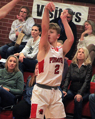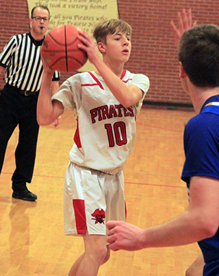 3-pointer and twice led by as many as 5 points at 2-7 and 6-11.Forsmann converted a 3-point play following a steal by Behler to finish off the quarter and cut the lead to 9-11. Forsmann scored 7 of Prairie’s 9 first quarter points with Behler scoring the other 2. Elven opened the second quarter scoring with 2 free throws to tie the game. Matt Wemhoff then gave the Pirates their first led with a baseline shot at the 7:07 mark. Gensee scored a free throw and then a basket to retake the lead but Forsmann scored a free throw to tie it that kicked of an 11-0 run to end the half. Shears followed with a basket following a steal by Lorentz that put Prairie ahead to stay. Behler then sank a 3 pointer. Forsmann finished out the half with a pair of free throws and then had a 3-pointer in the final seconds. That gave Prairie a 24-14 halftime lead. Wemhoff started the second half by stealing the ball and driving for a lay-up. After a pair of Bulldog baskets, Behler scored to put the lead back to 10 at 28-18. After another Genesee basket, Lorentz scored on an inbounds feed from Wemhoff and then Forsmann converted another 3-point play for a 33-20 lead. Genesee cut the lead back down to 10 but Prairie then ended the quarter with a 6-0 run as Lorentz, Phil Schwartz and Forsmann each scored to give Prairie a 41-25 lead heading into the fourth quarter. Genesee opened the fourth quarter scoring with a free throw but Lorentz answered with a basket that gave Prairie their biggest lead of the game at 43-26. Genesee was able to cut into the lead but never got any closer than the final margin of 10 points. Forsmann led the Pirates in scoring with 21 points. Behler scored 9, Lorentz 8, Elven 6, Wemhoff 4 and Shears and Schwartz 2 each. Prairie had a 27-16 edge on the boards. Forsmann had 8 rebounds to lead the team while Elven added 6. Behler had 6 steals while Lorentz had 5. Wemhoff and Behler each had 3 assists. Prairie was 19 for 43 from the field, 44%, and 12 for 16 at the line, 75%. Genesee was 16 for 30 from the field, 53%, and 9 for 17 at the line, 53%. Prairie won the 2-quarter JV game 23-14. Nate Forsmann and Phil Schwartz each scored to give Prairie a 4-0 lead. Genesee then scored 8 straight points to take the lead. Forsmann and Levi Gehring each scored a basket to tie the game. After Genesee took back the lead with a basket, Benny Secrest converted a 3-point play to give Prairie an 11-10 lead at the end of the quarter. Prairie scored the first 6 points of the second quarter to take a 7 point lead. Forsmann, Schwartz and Briggs Rambo each scored a basket. After a Genesee baskets, Gehring and Levi McElroy each sank a 3-pointer to put Prairie up 23-12 with 3:46 left. Prairie didn’t score again but all Genesee was able to score was 1 basket to cut the final margin to 9. Forsmann scored 6 points and added 5 rebounds to lead the team in both categories. Gehring scored 5 while Schwartz scored 4, Secrest and McElroy 3 each and Rambo 2. Genesee had a 13-18 edge on the boards. Schwartz had 2 steals and Rambo had 2 assists. The JVs were 10 for 29 from the field, 34%, and 1 for 3 at the line, 33%. Genesee was 7 for 16 from the field, 44%, and 0 for 4 at the line. Prairie 9 15 17 11 -52 Genesee 11 3 11 17 -42 Prairie-Wemhoff 2-4, 0-0, 4; Shears 1-5, 0-0, 2; Lorentz 4-8, 0-0, 8; Behler 4-6, 0-0, 9; Forsmann 5-14, 10-14, 21; Elven 2-4, 2-2, 6; Schwartz 1-2, 0-0, 2. 3-pointers-Behler, Forsmann. Genesee-Schwartz 1-2, 0-0, 3; Wareham 7-10, 4-8, 18; Vestal 0-1, 0-0, 0; Burt 1-5, 2-3, 4; Stewart 3-6, 1-1, 7; Johnson 0-0, 0-0, 0; Zenner 3-4, 1-2, 7; Clark 1-2, 1-3, 3. 3-pointers-Schwartz. Vs. Potlatch In the game against the